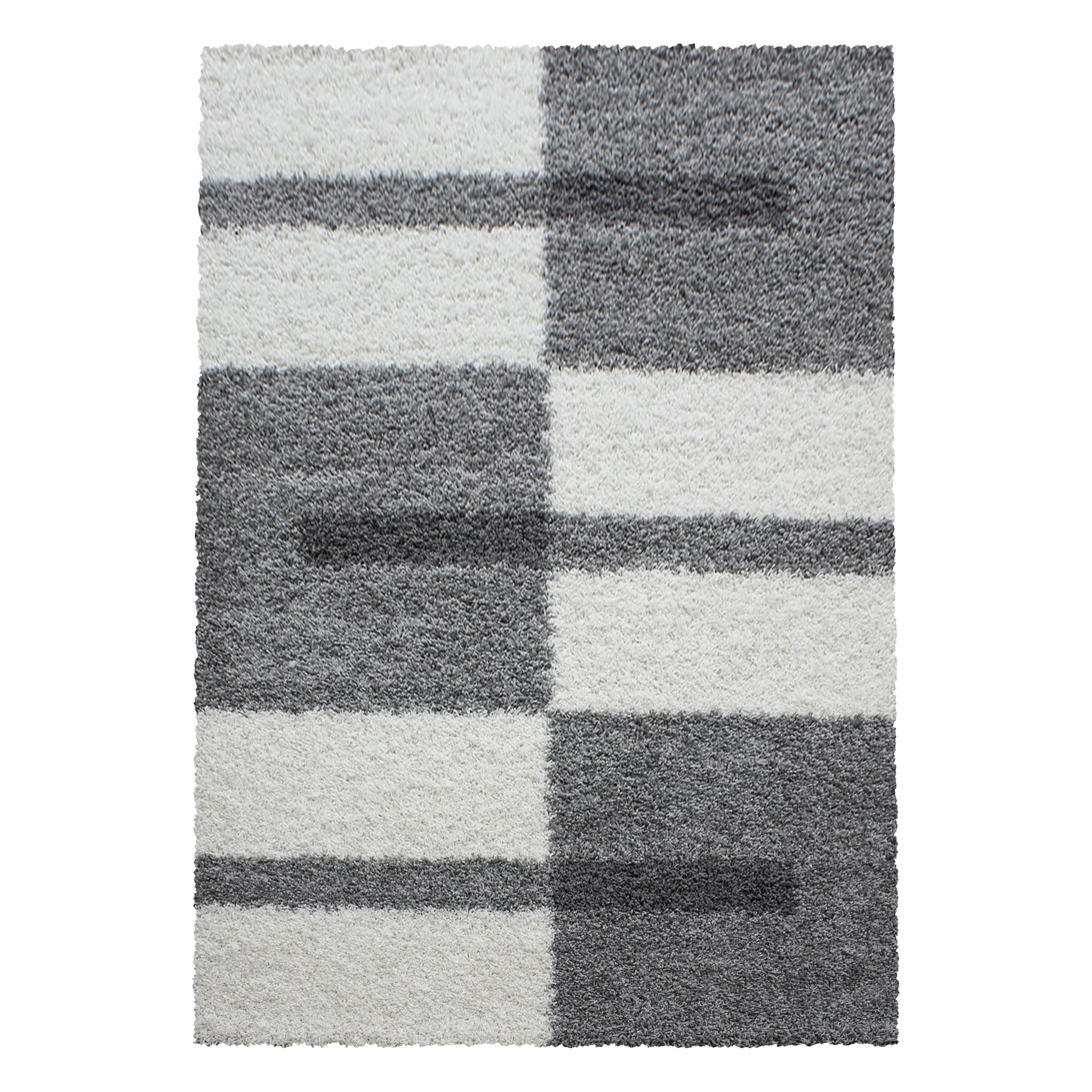 60 % Polypropylene, 30 % Jute, 5 % Polyester, 5 % Latex 100 % PP. Shaggy, Florhöhe: 30 mm, 50.500 Points, 2100 gr (±%5)M2, Rücken aus Jute Hochflorteppiche, Kariert Design, Farbe Hellgrau, Teppich für Wohnzimmer, Rücken aus Jute