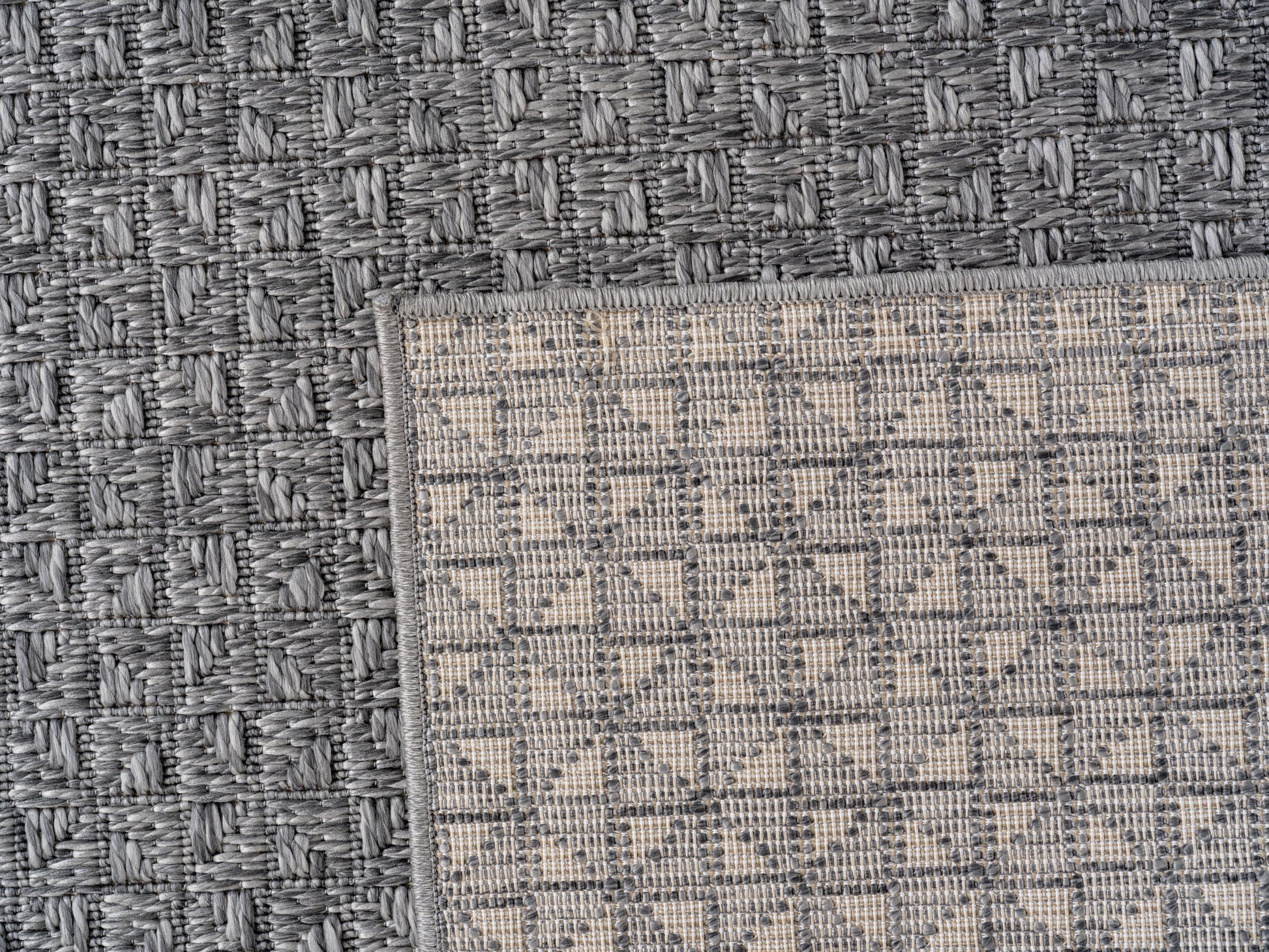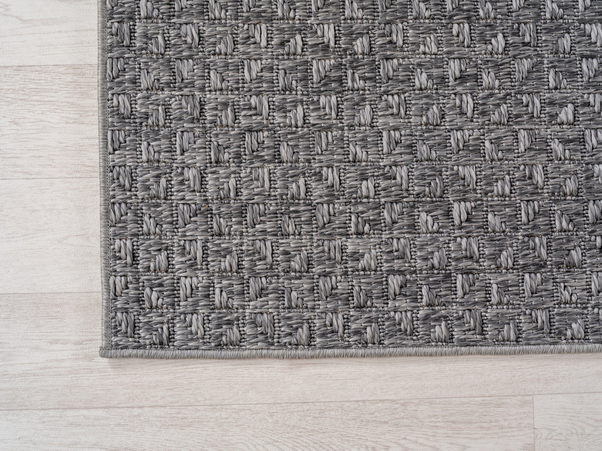 In- & Outdoorteppiche Grau 8x15 cm Läufer, Wetterfest & UV-beständig, Ideal für Küche, Balkon, Terrasse, Wohnzimmer und Esszimmer, Karo-Design im Boho-Stil
