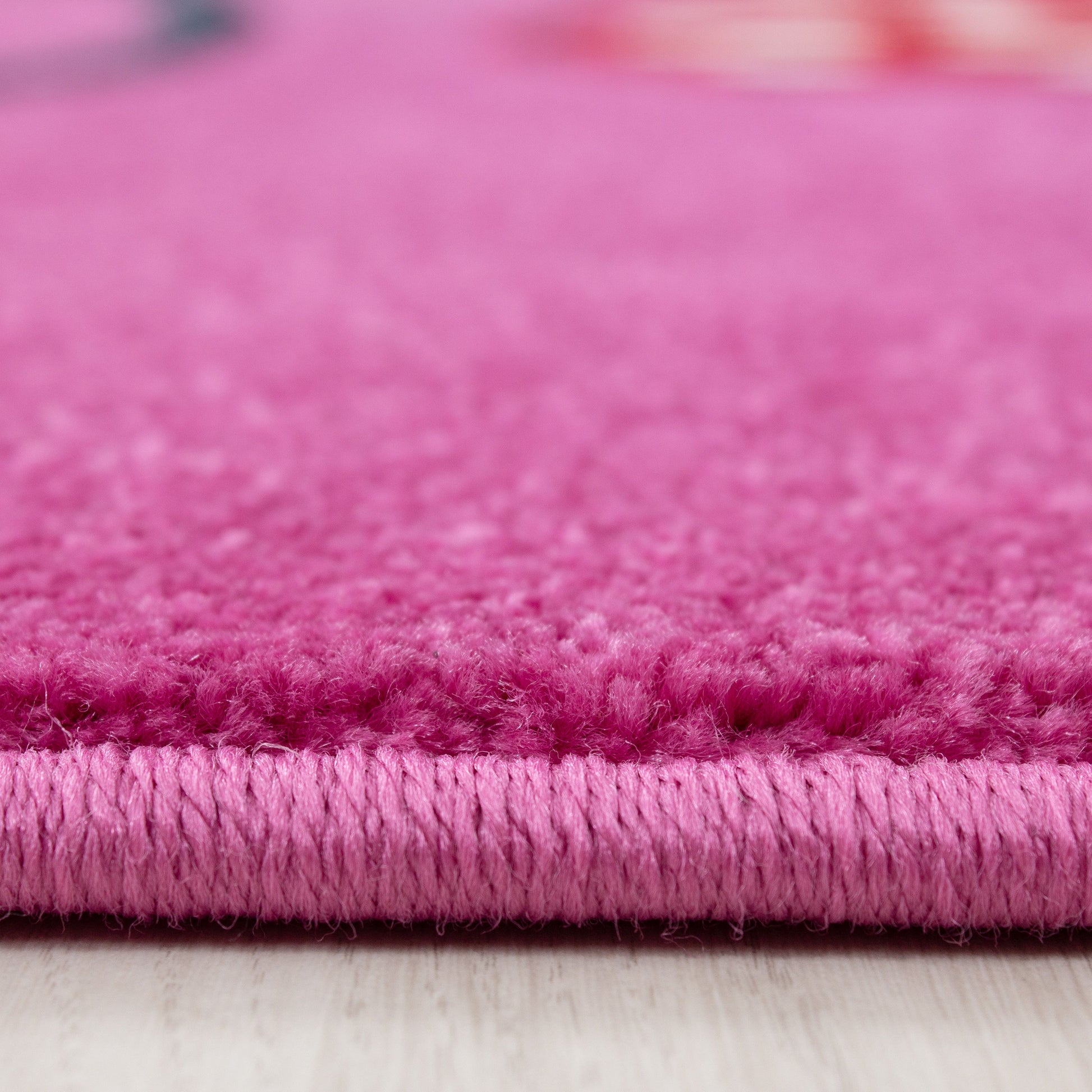 Kinderteppiche, Eulen-Design, Farbe Violett, Teppich für Kinderzimmer, Rücken aus Jute