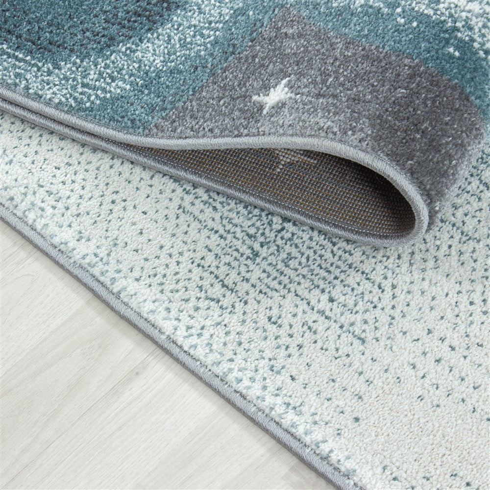Kinderteppich Kinderzimmer süßes Bärenmotiv Blau Grau Weiß Farben