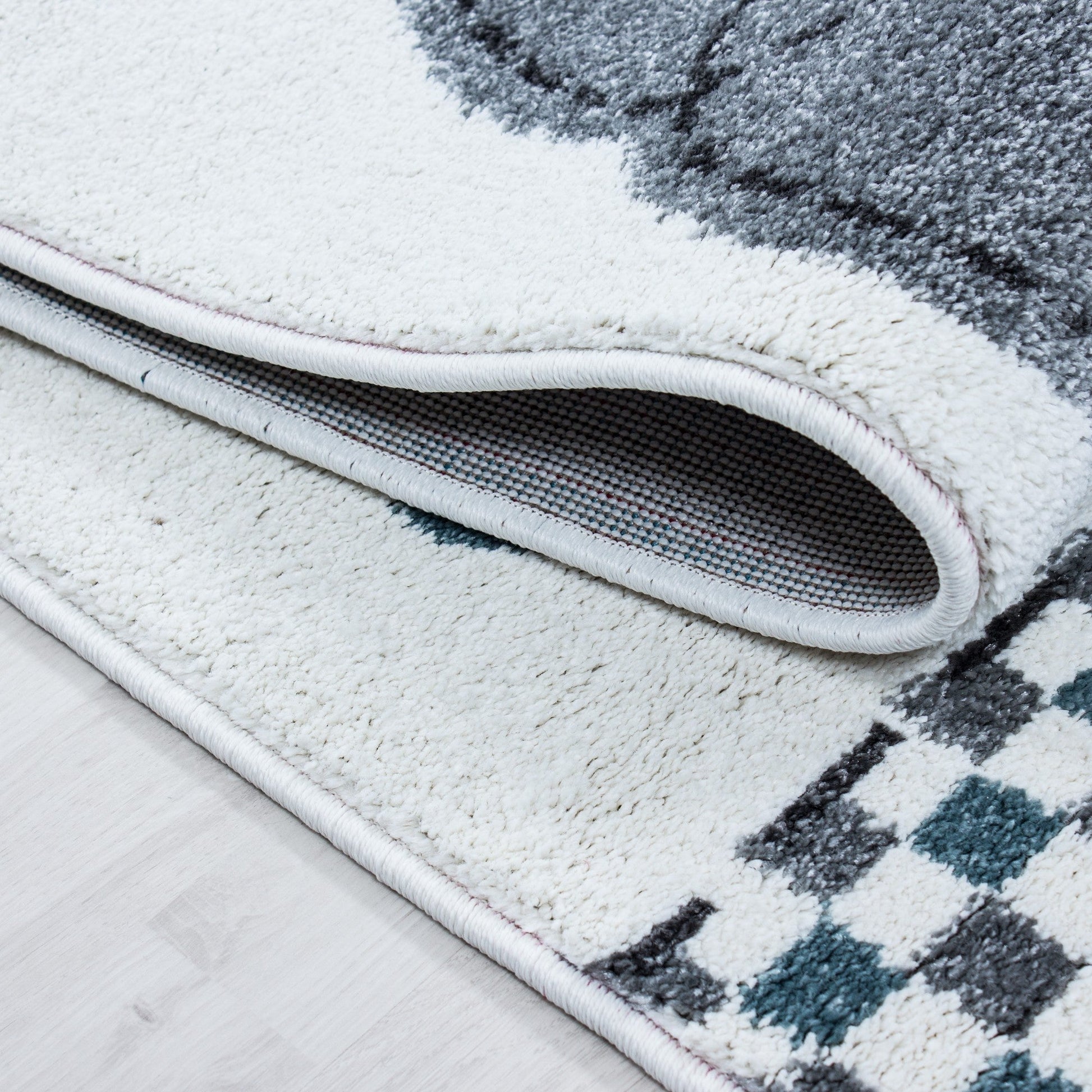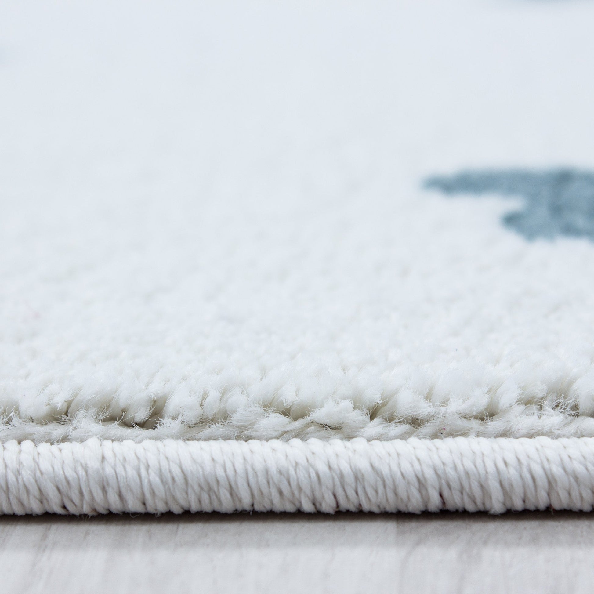 Kinderteppich Kinderzimmer Teppich Elefant Herzregen Grau-Weiß-Blau