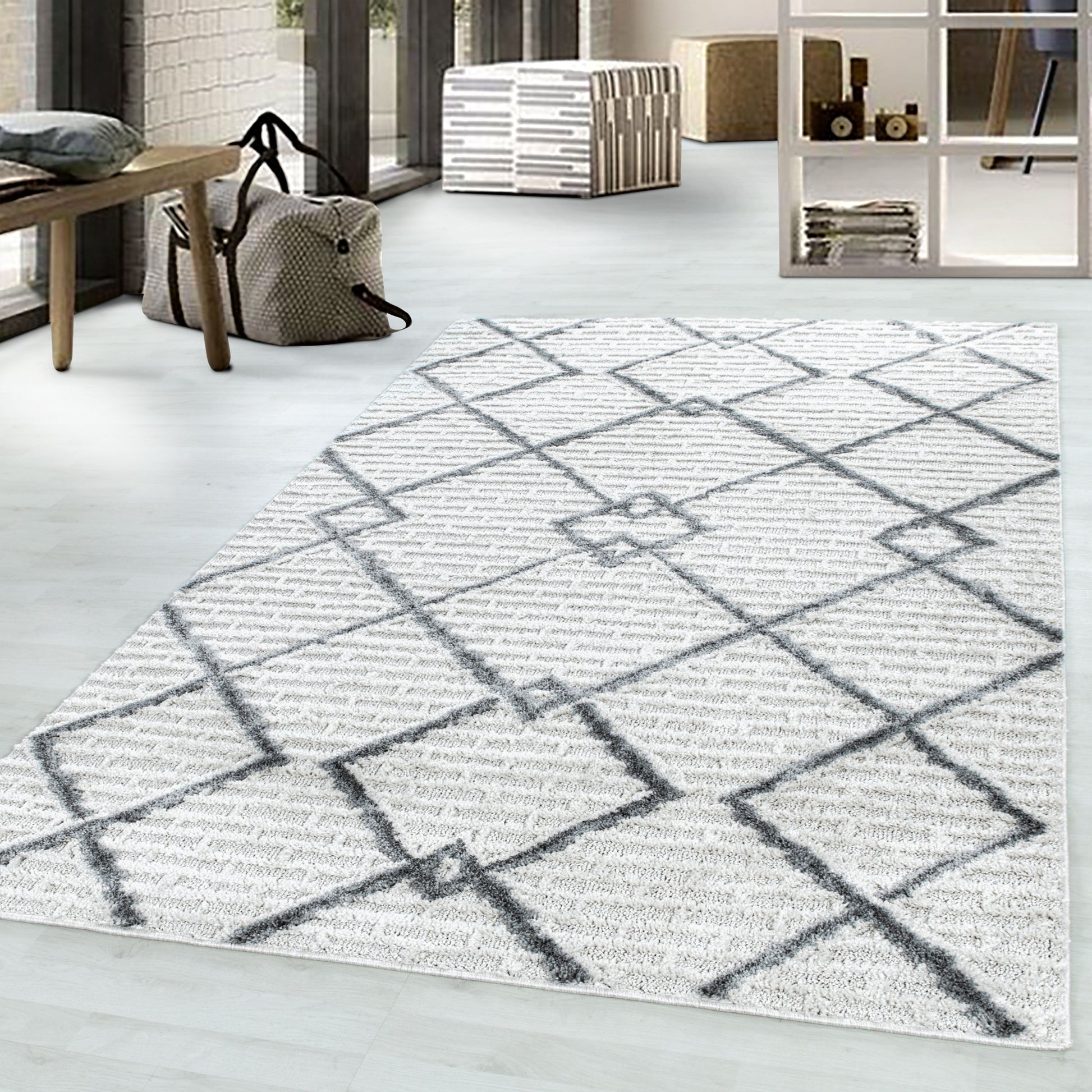 Kurzflor Design Teppich MIA Looped Flor Gitter Muster Abstrakt Creme