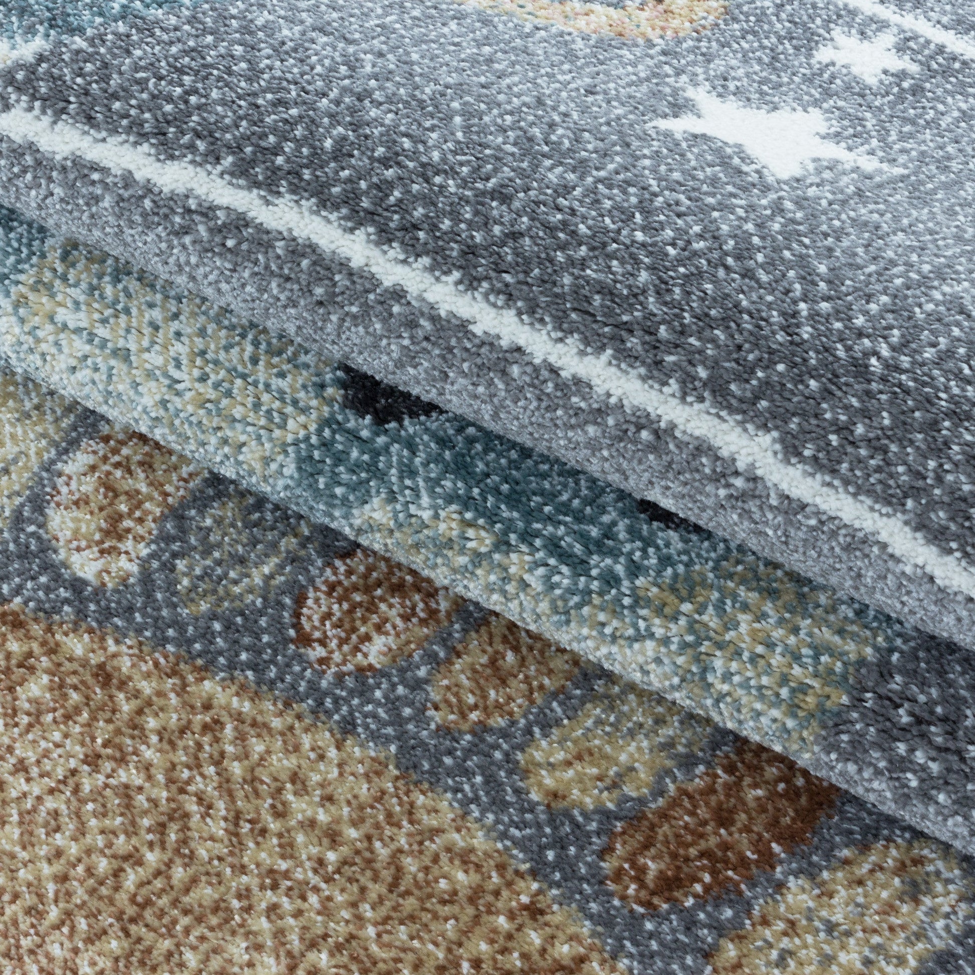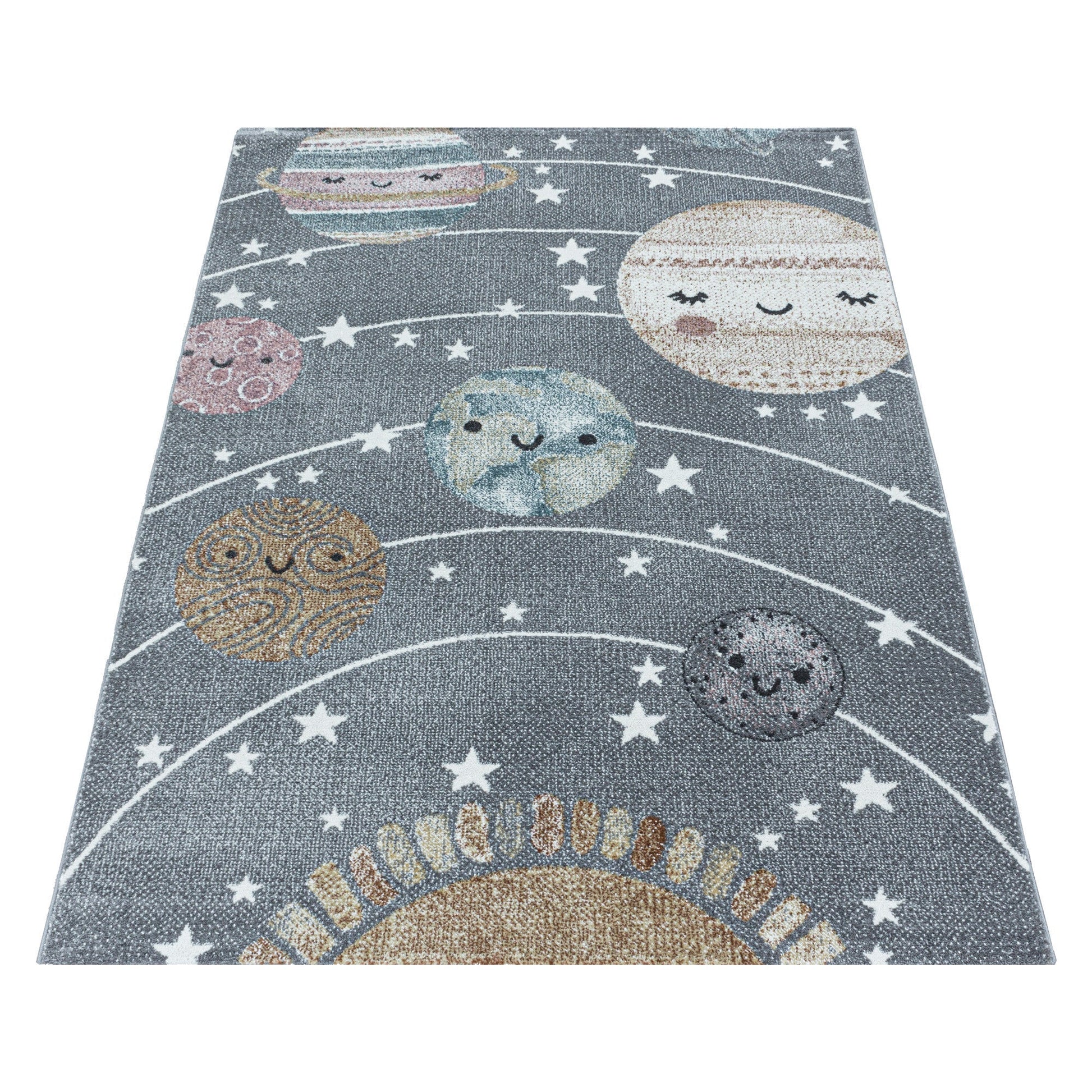 Kurzflor Kinderteppich Planet Weltall Sonne Mond Kinderzimmer Teppich Grau