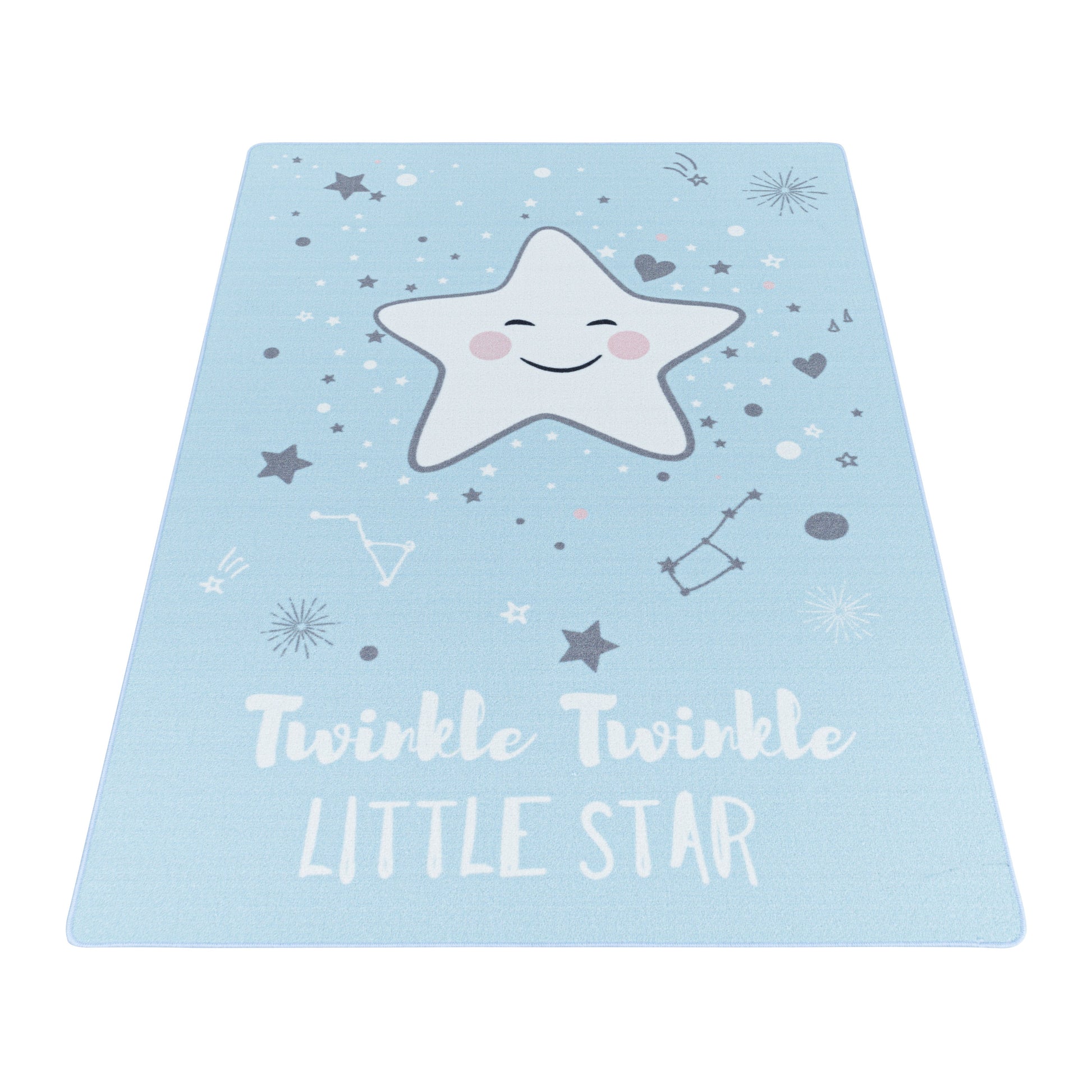 Kurzflor Kinderteppich Spielteppich Kinderzimmer Teppich Motiv Baby Stern Blau