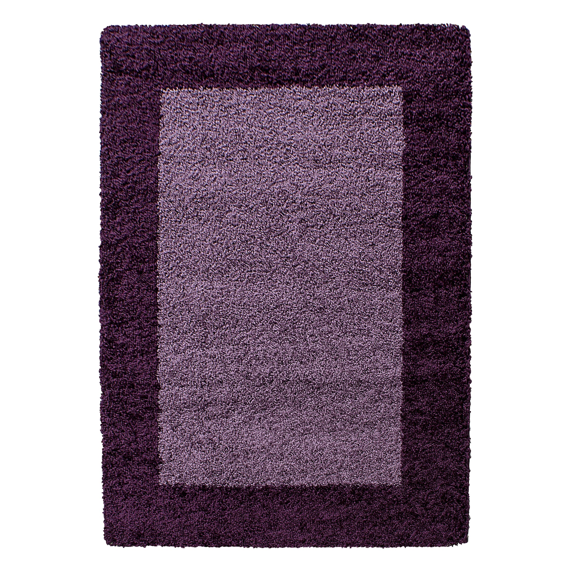 60 % Polypropylene, 30 % Jute, 5 % Polyester, 5 % Latex 100 % PP. Shaggy, Florhöhe: 30 mm, 48.500 Points, 2000 gr (±%5)M2, Rücken aus Jute Hochflorteppiche, Bordüre Design, Farbe Violett, Teppich für Wohnzimmer, Rücken aus Jute