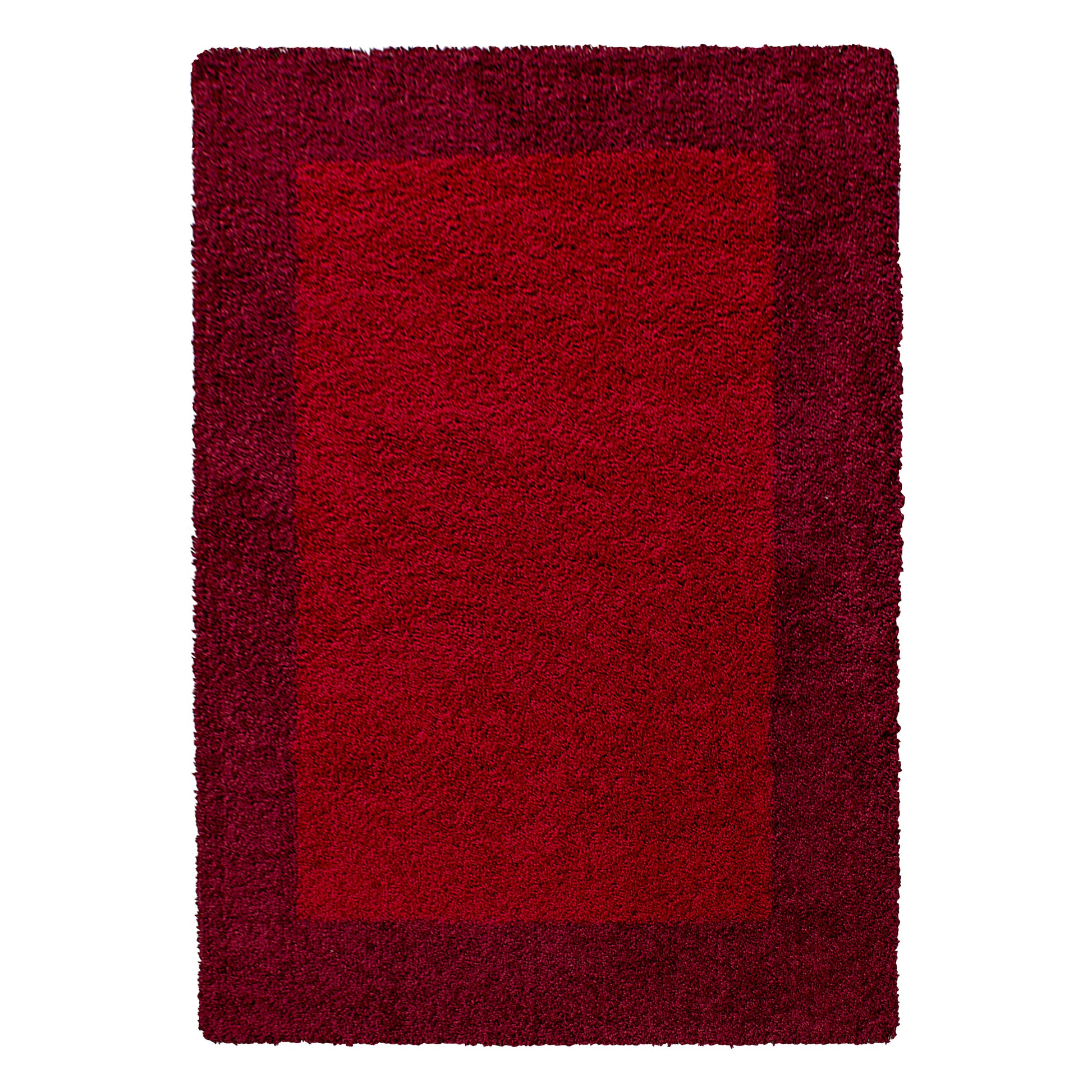 60 % Polypropylene, 30 % Jute, 5 % Polyester, 5 % Latex 100 % PP. Shaggy, Florhöhe: 30 mm, 48.500 Points, 2000 gr (±%5)M2, Rücken aus Jute Hochflorteppiche, Bordüre Design, Farbe Rot, Teppich für Wohnzimmer, Rücken aus Jute