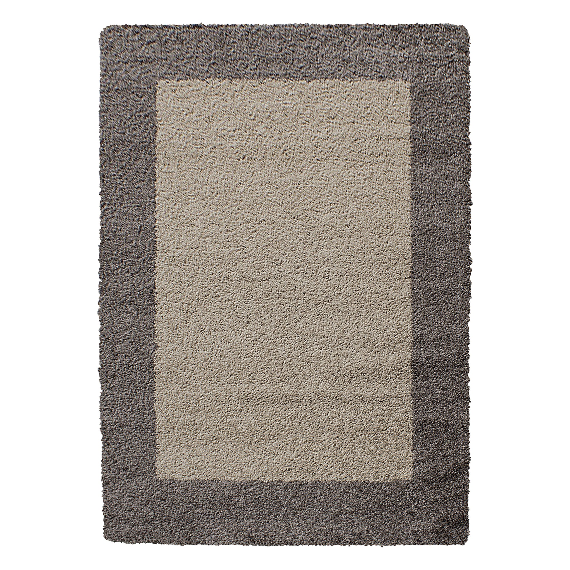Hochflorteppiche, Bordüre Design, Farbe Taupe, Teppich für Wohnzimmer, Rücken aus Jute
