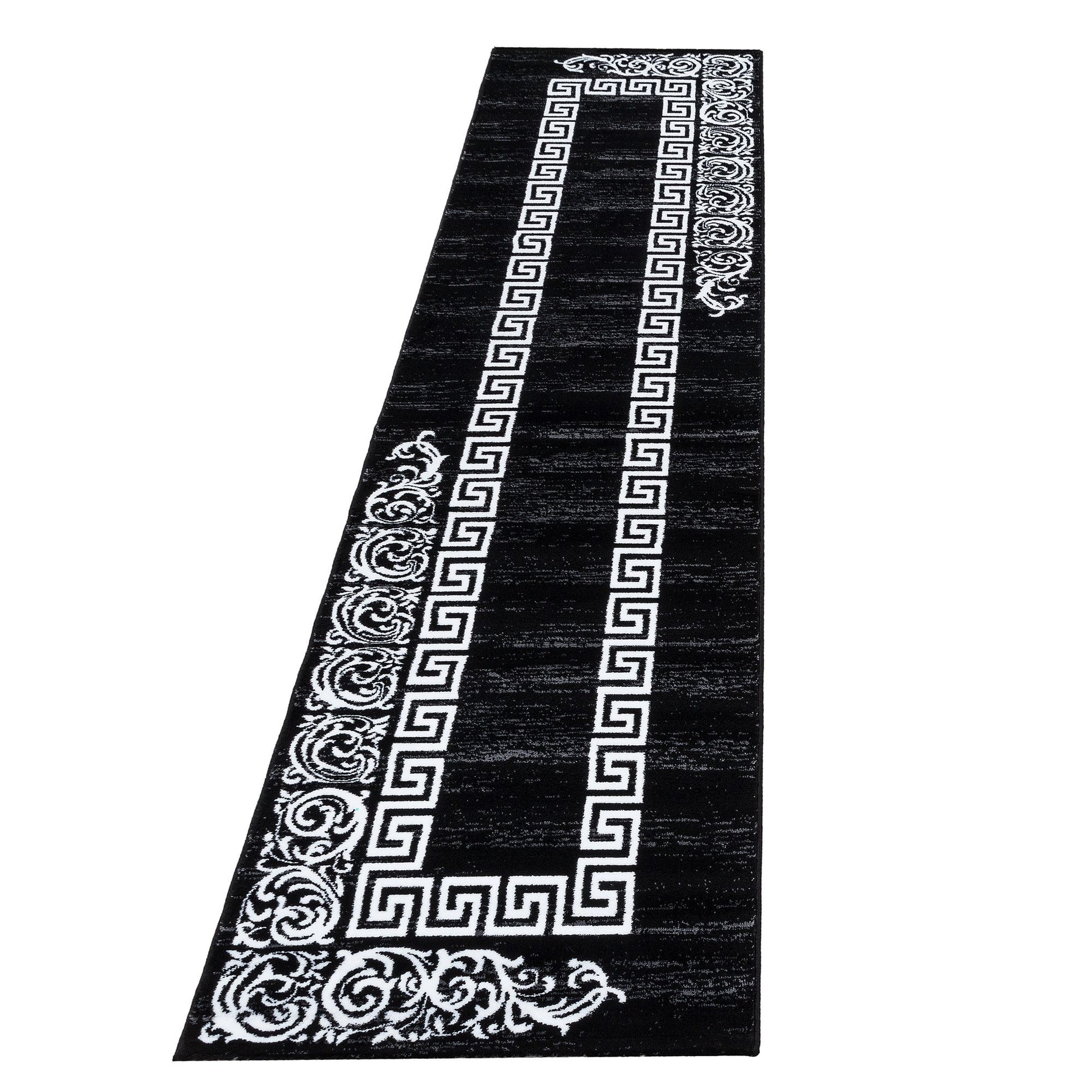 Kurzflorteppiche, Mäander-Design, Farbe Schwarz, Teppich für Wohnzimmer, Rücken aus Jute