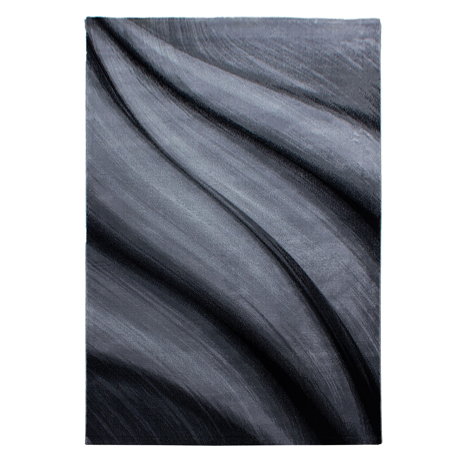 Kurzflorteppiche, Abstrakt Wellen Design, Farbe Schwarz, Teppich für Wohnzimmer, Rücken aus Jute