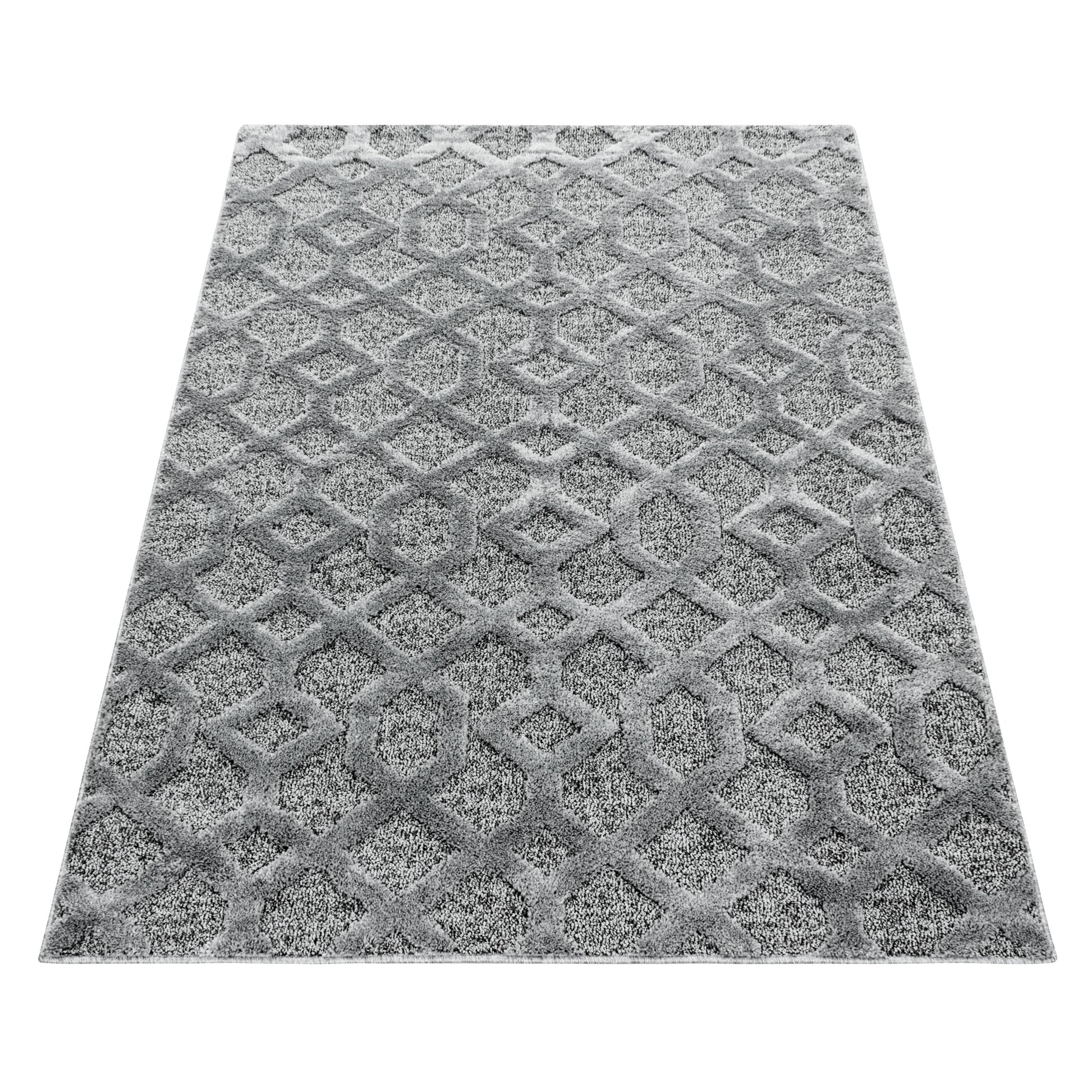60 % Polypropylene, 30 % Jute, 5 % Polyester, 5 % Latex 100 % Polypropylen, 10 mm Cutloop und Florhöhe: 20 mm, 92.800 Points, 2150 gr (±%5)M2, Rücken aus Jute Hochflorteppiche, Geometrisch Design, Farbe Grau, Teppich für Wohnzimmer, Rücken aus Jute