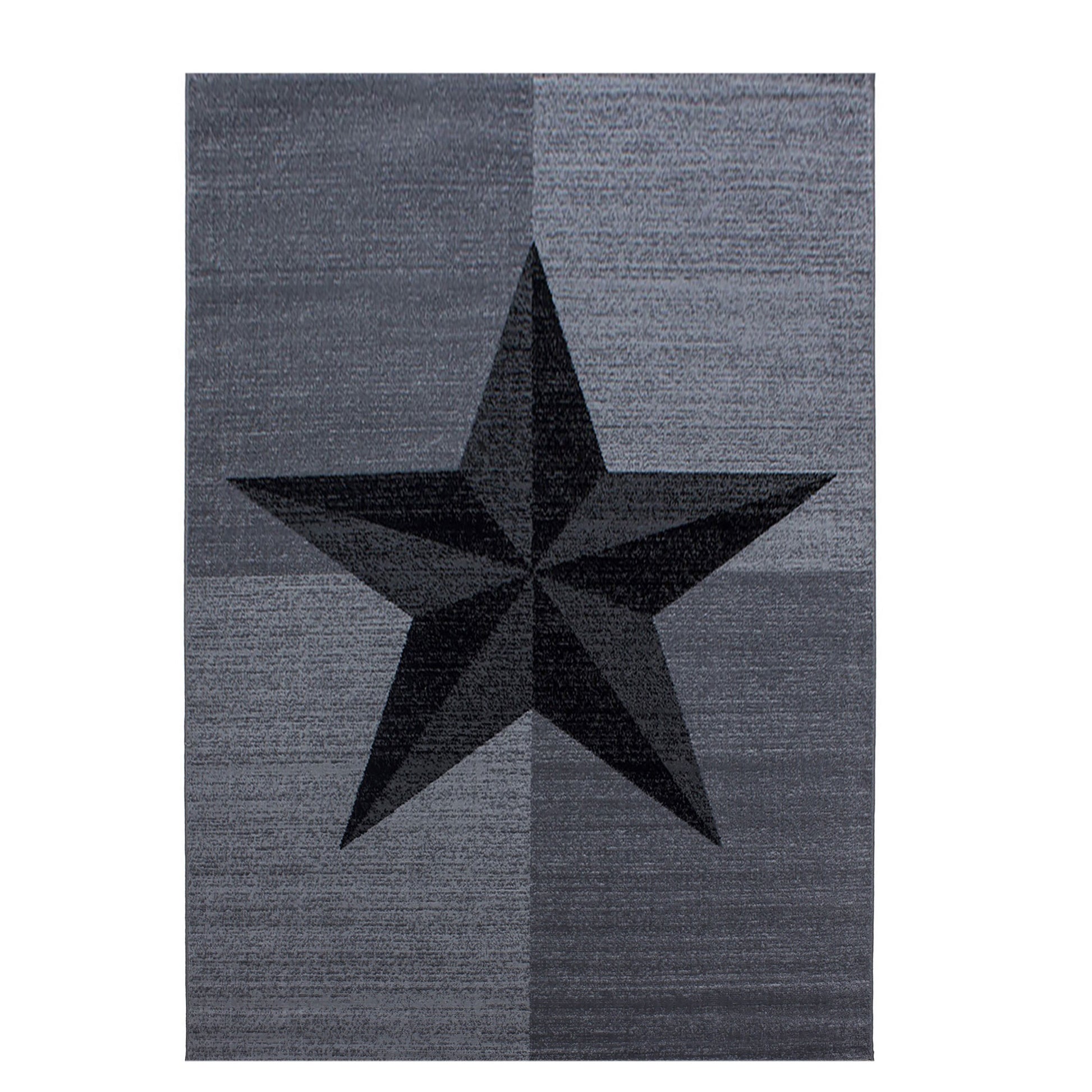 Kurzflorteppiche, Sterne-Design, Farbe Grau, Teppich für Wohnzimmer, Rücken aus Jute