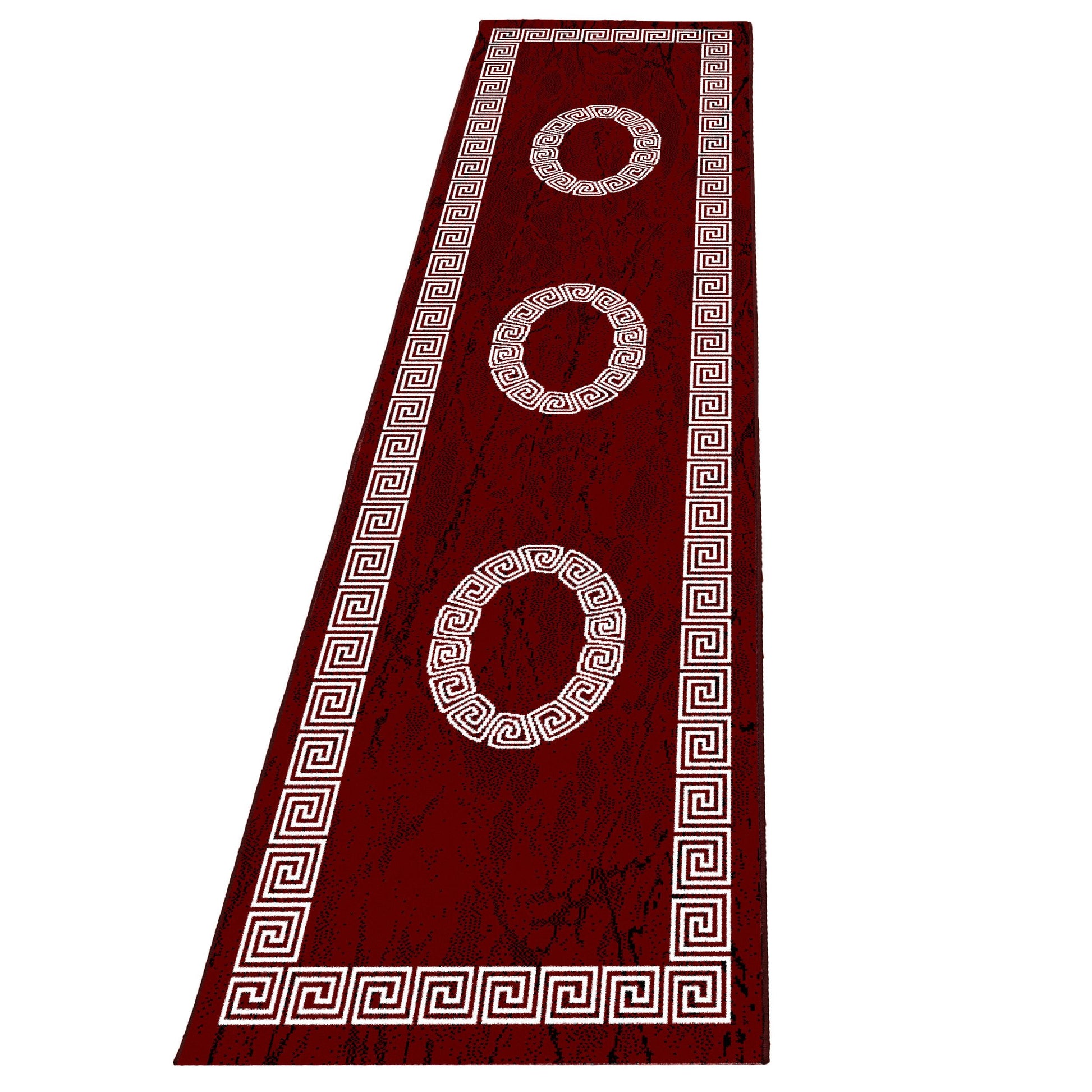 Kurzflorteppiche, Mäander-Design, Farbe Rot, Teppich für Wohnzimmer, Rücken aus Jute