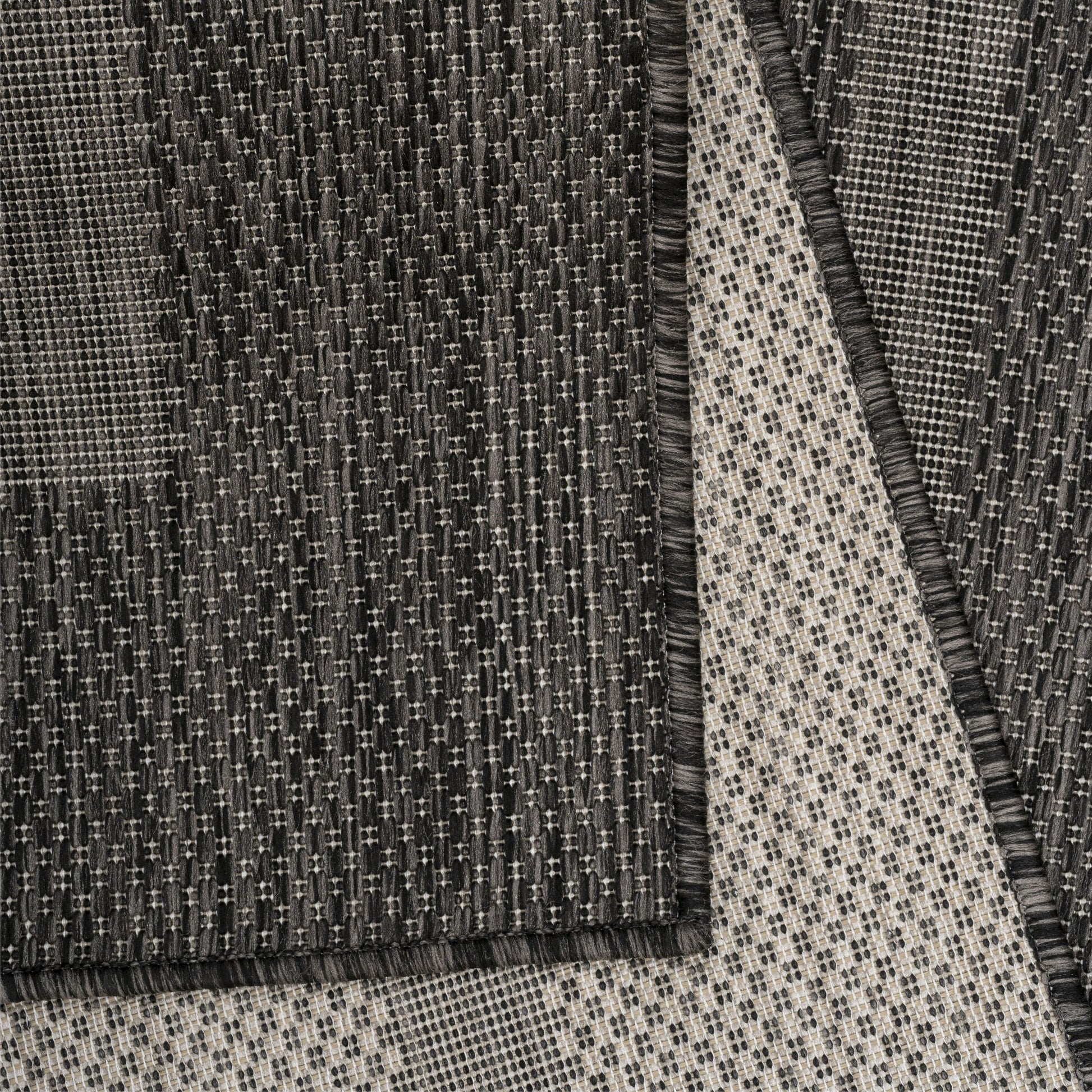 90 % Polypropylene, 10 % Polyester 100 % PP. Heatset Friese, Florhöhe: 3 mm, 76.800 Points, 1100 gr (±%5)M2, Rücken aus Polypropylen Outdoorteppiche, Unicolor - Einfarbig, Farbe Schwarz, Teppich für Terasse-Balkon-Küche, Rücken aus Polypropylen