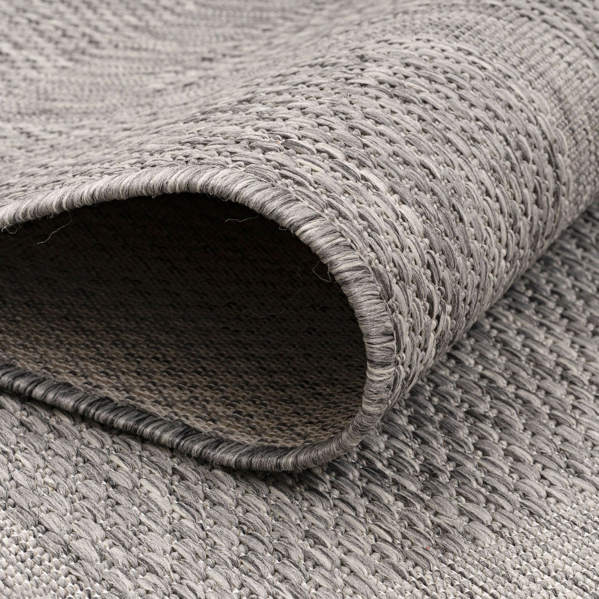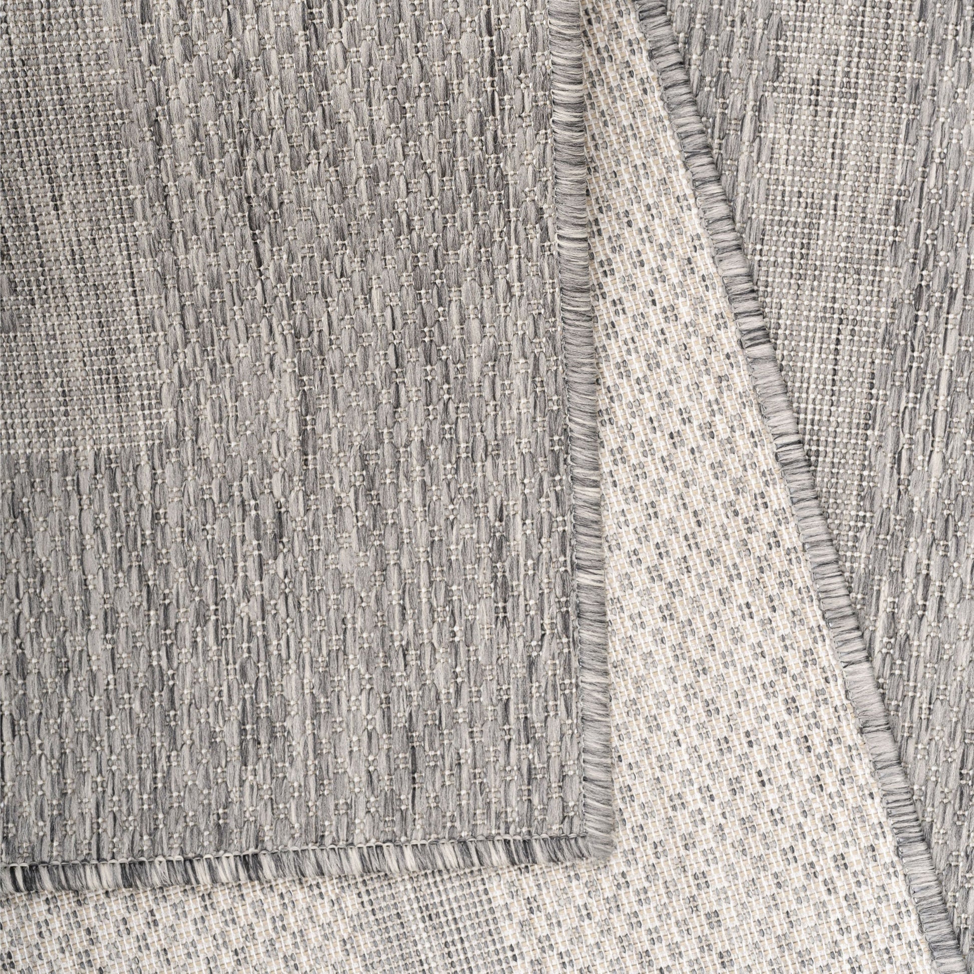 90 % Polypropylene, 10 % Polyester 100 % PP. Heatset Friese, Florhöhe: 3 mm, 76.800 Points, 1100 gr (±%5)M2, Rücken aus Polypropylen Outdoorteppiche, Unicolor - Einfarbig, Farbe Grau, Teppich für Terasse-Balkon-Küche, Rücken aus Polypropylen