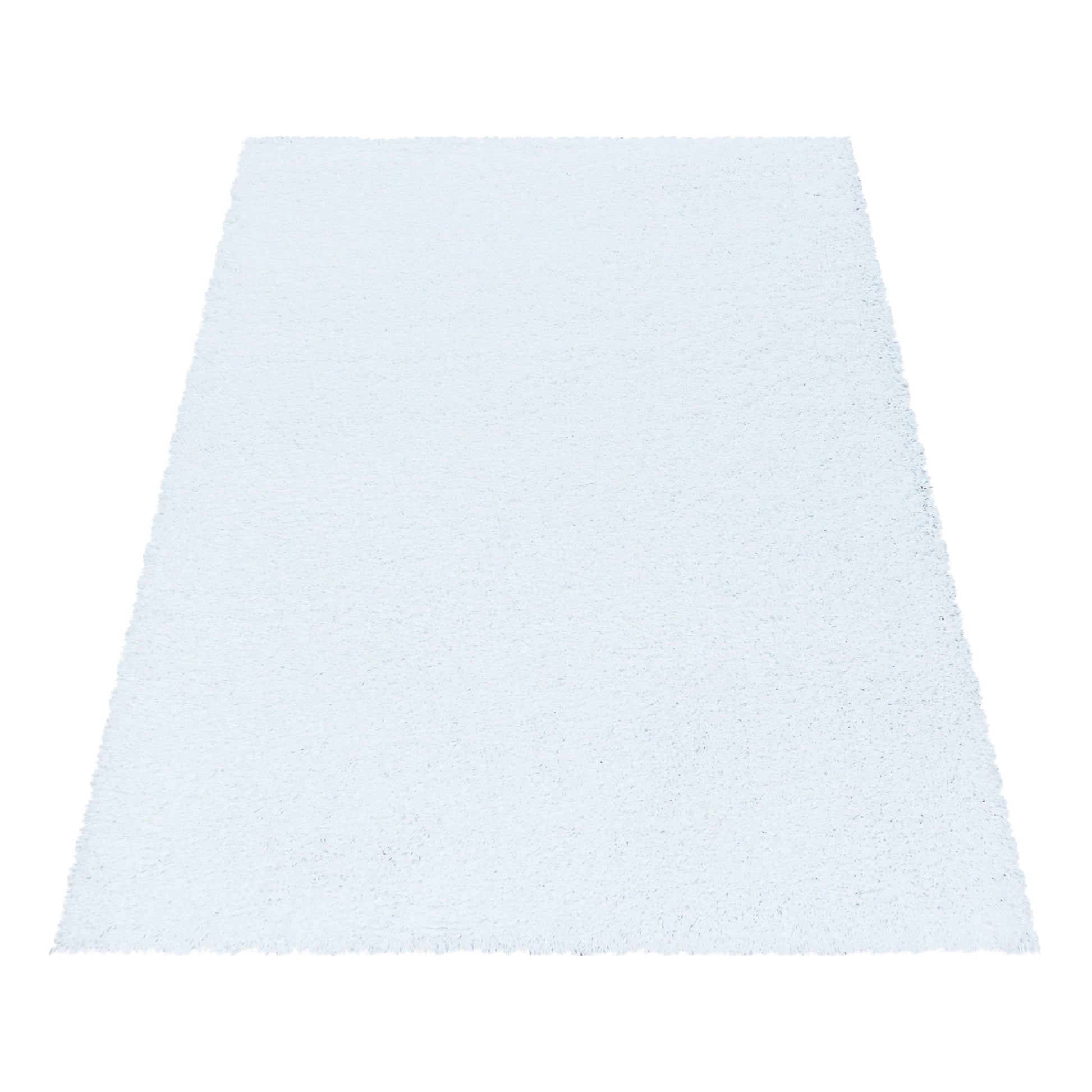 60 % Polypropylene, 30 % Jute, 5 % Polyester, 5 % Latex 100 % PP. Shaggy, Florhöhe: 30 mm, 51.500 Points, 2100 gr (±%5)M2, Rücken aus Jute Hochflorteppiche, Unicolor - Einfarbig, Farbe Weiß, Teppich für Wohnzimmer, Rücken aus Jute