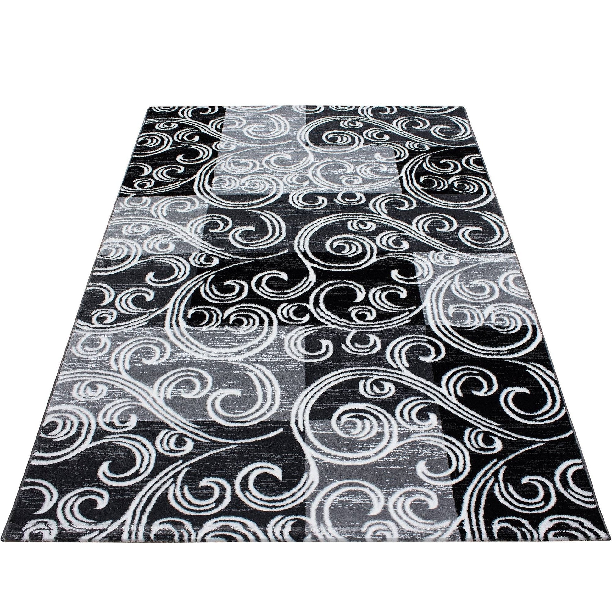 Teppich Modern Designer Barock mit Kariert Muster Meliert Schwarz Grau Weiß