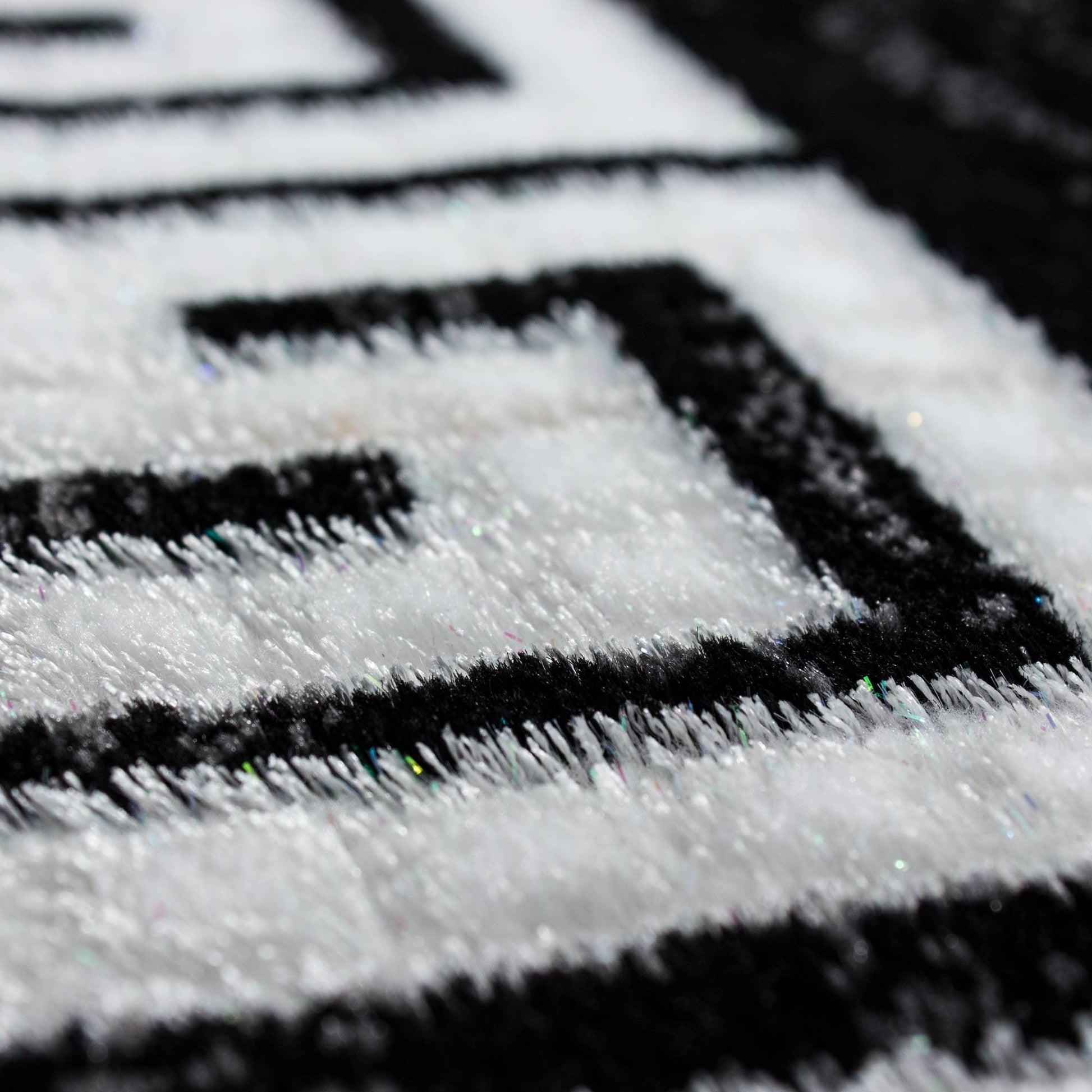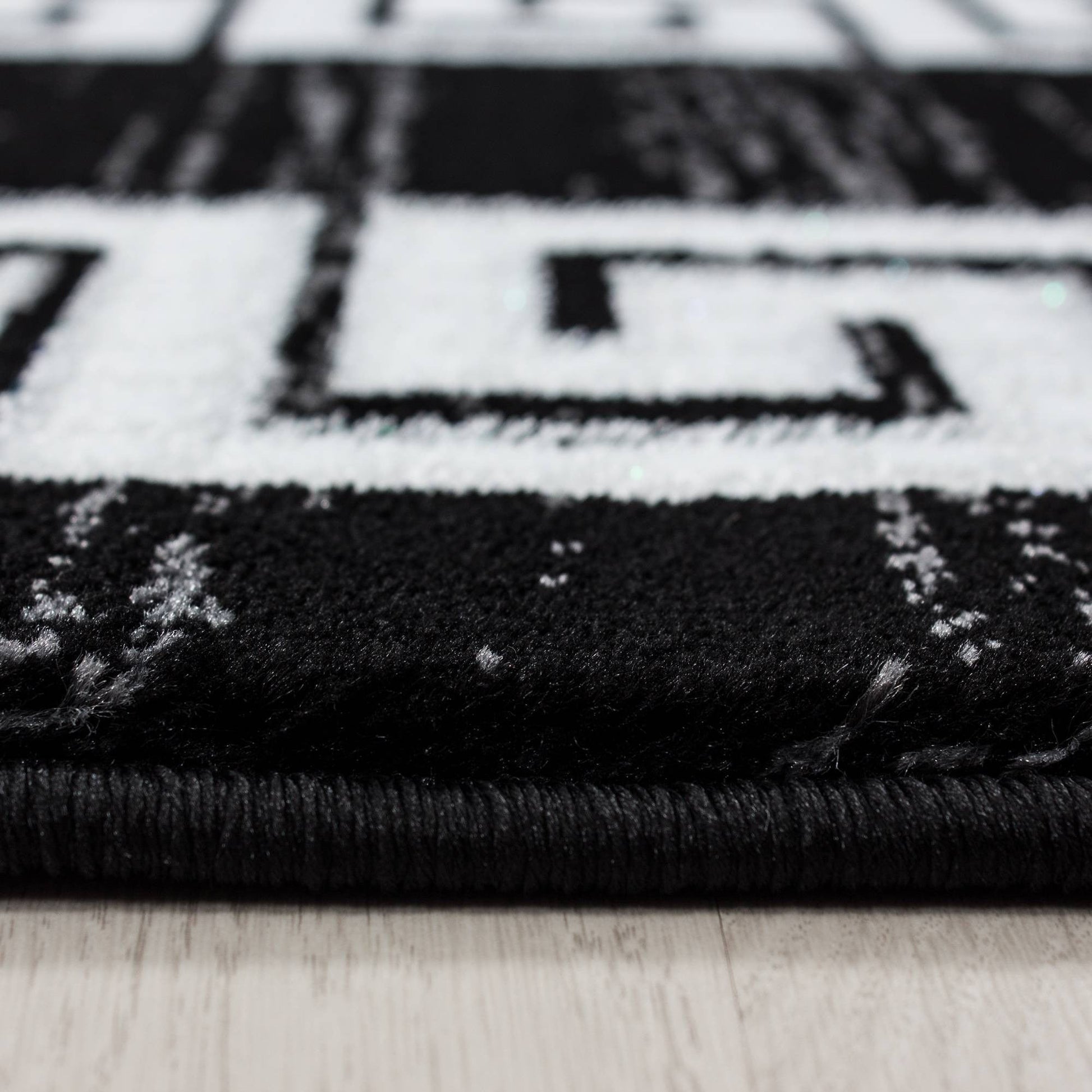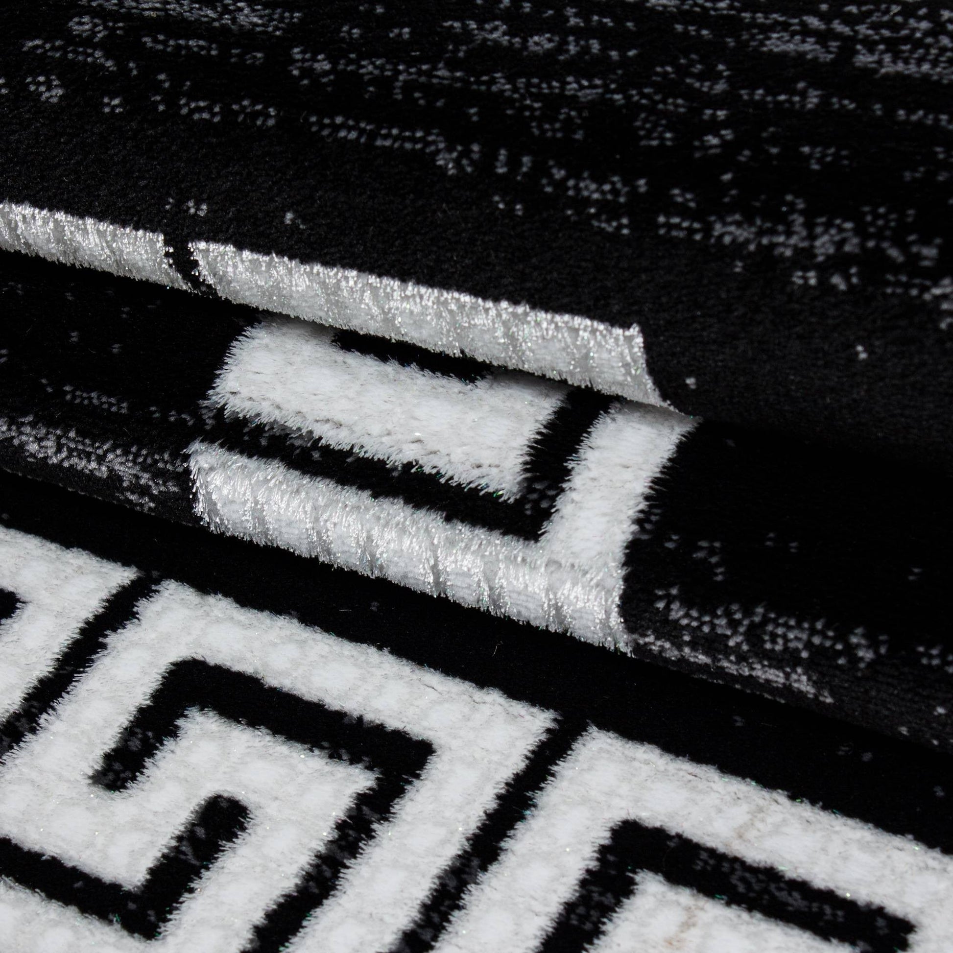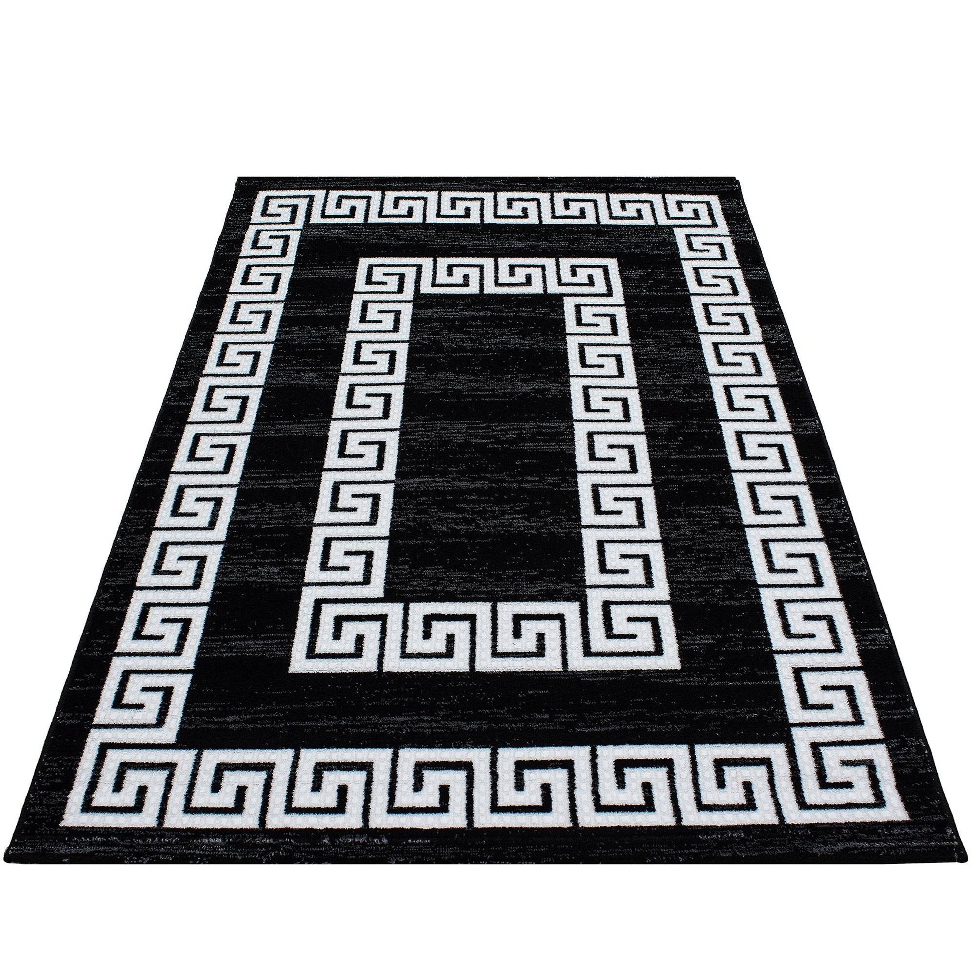 Teppich Modern Designer Wohnzimmer Bordüre Versace Muster Meliert Schwarz Weiss
