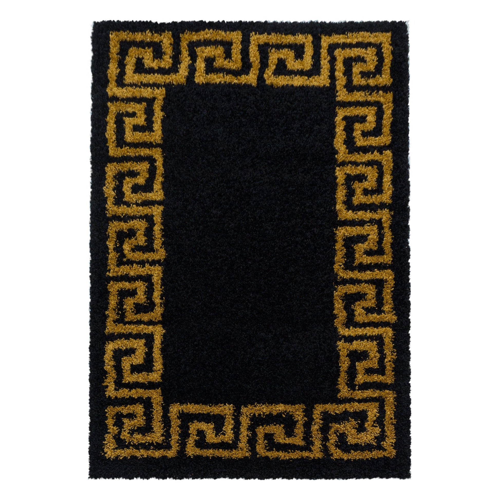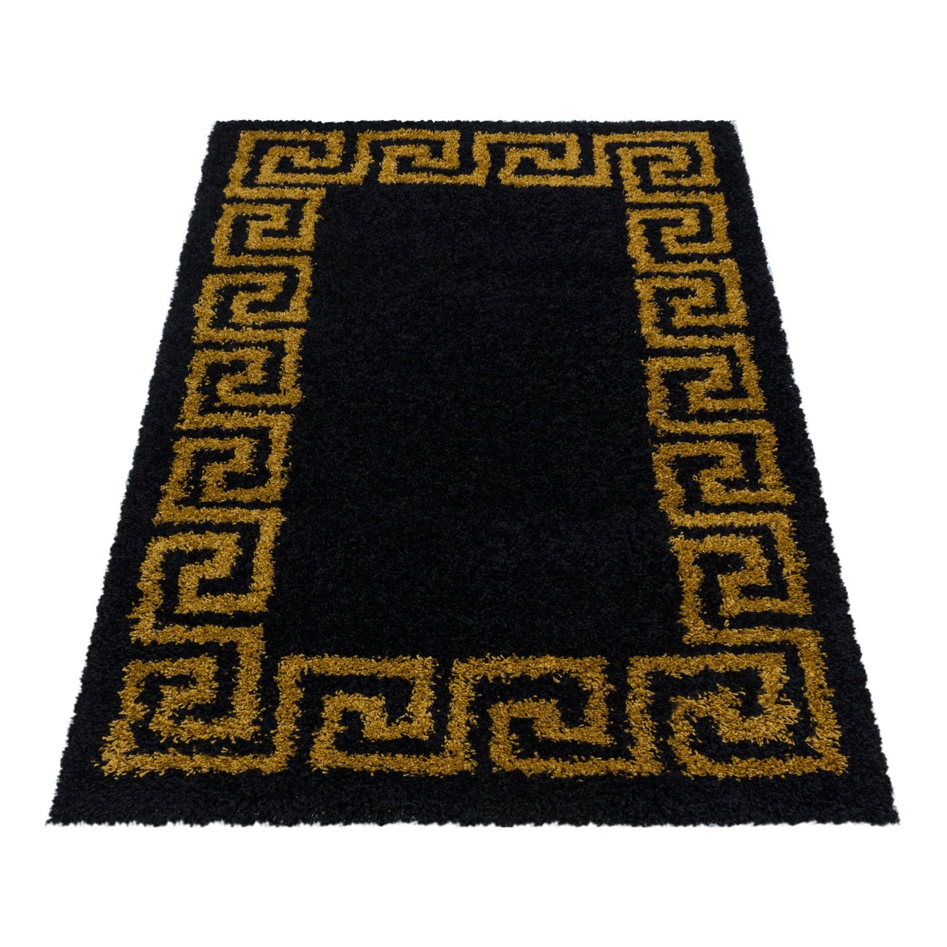 Wohnzimmerteppich Design Hochflor Teppich Muster Antike Bordüre Farbe Gold