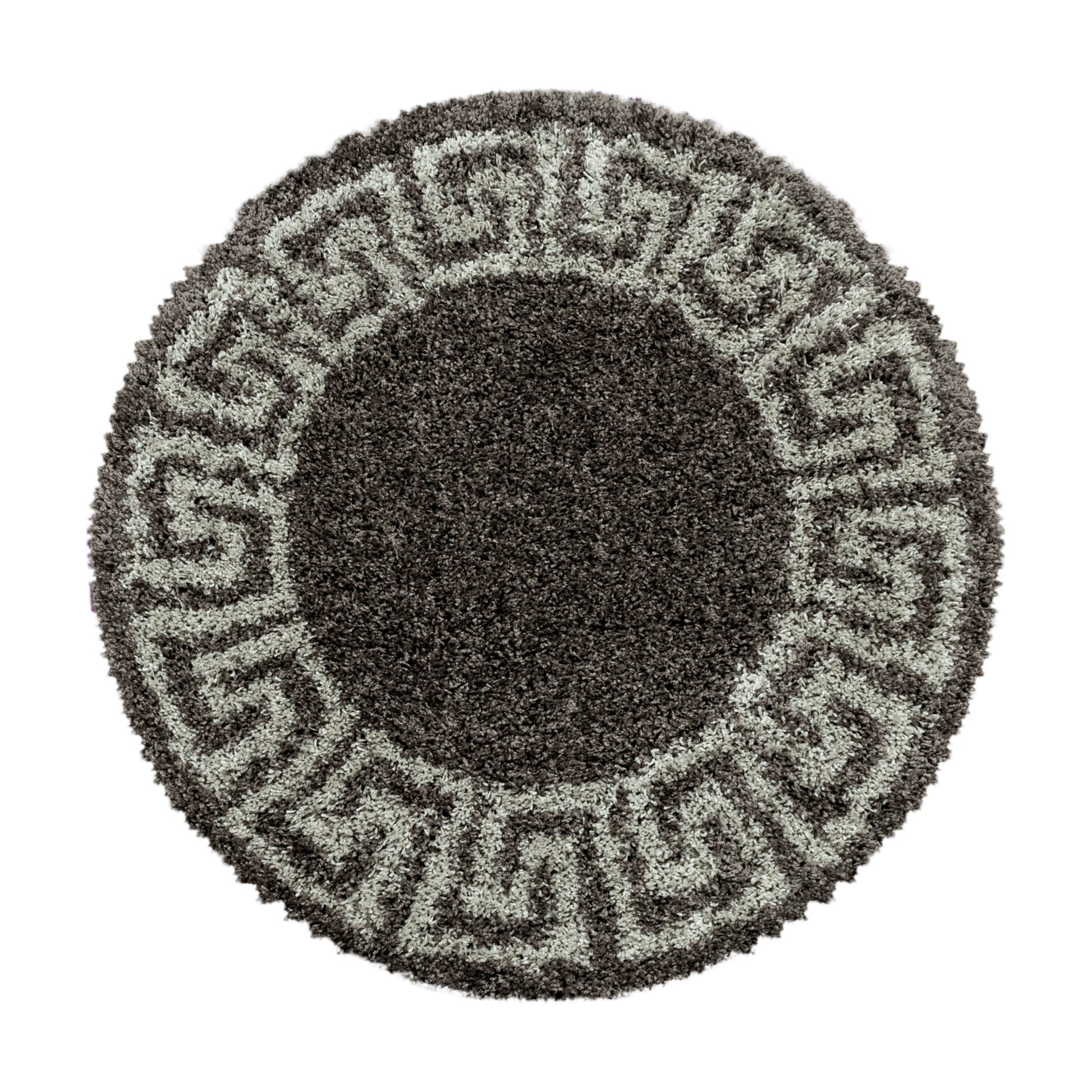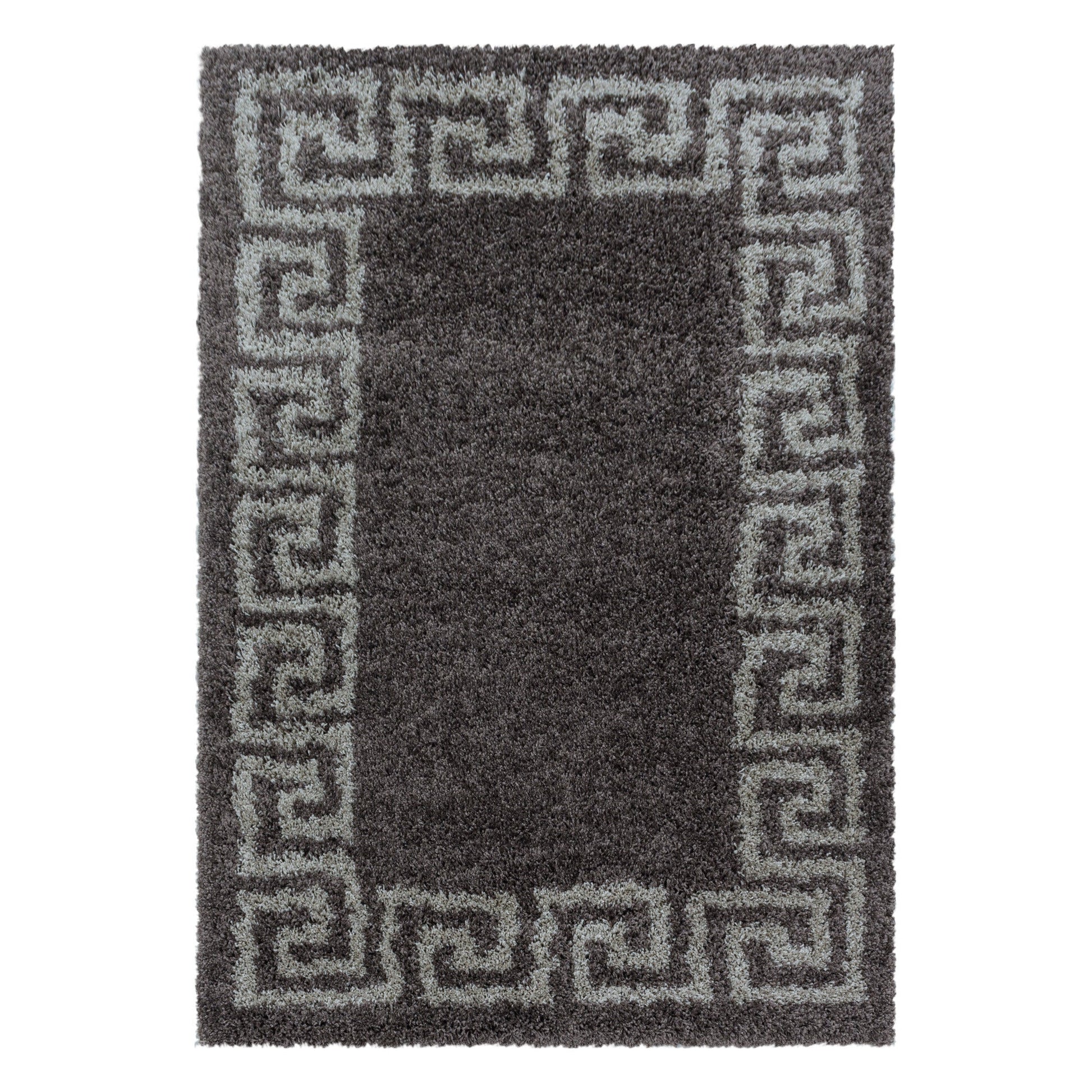 Wohnzimmerteppich Design Hochflor Teppich Muster Antike Bordüre Farbe Taupe