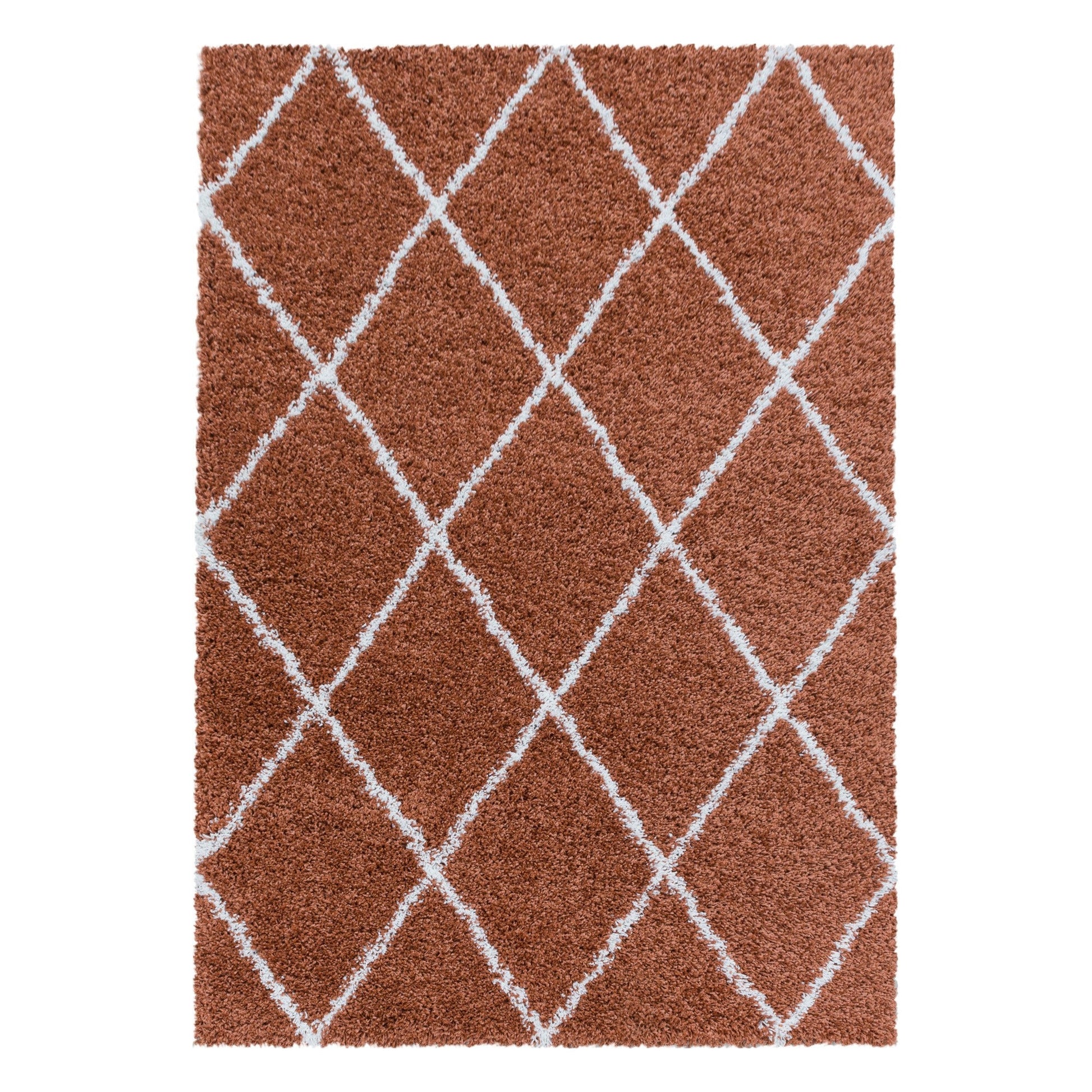 Wohnzimmerteppich Design Hochflor Teppich Muster Raute Flor Weich Farbe Terra