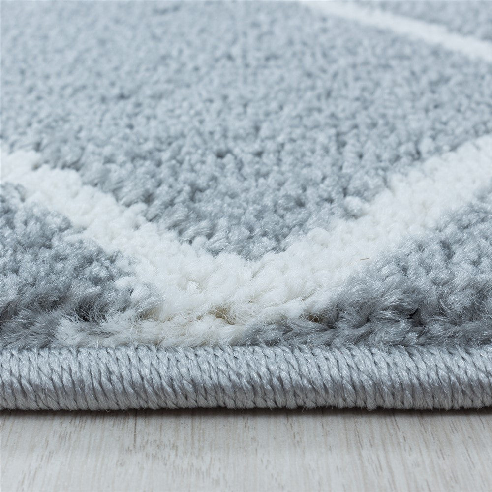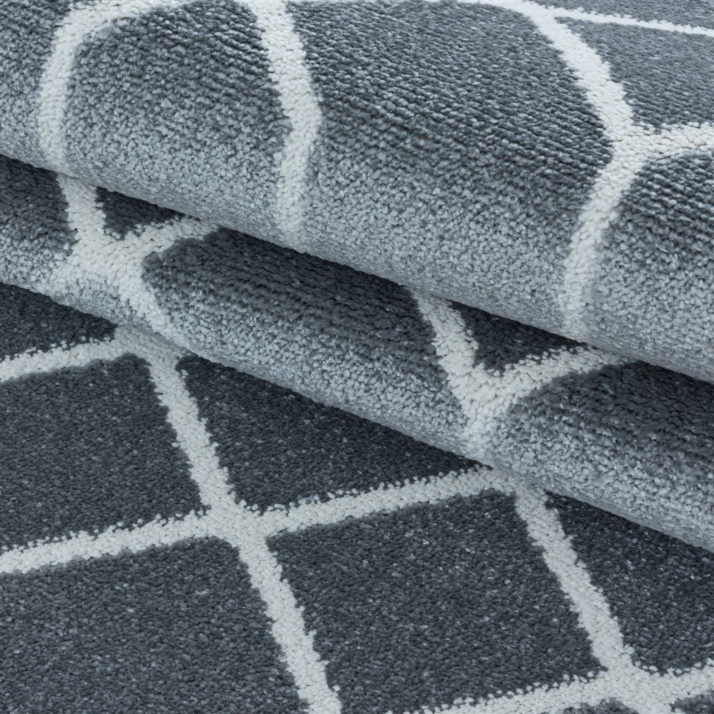 Wohnzimmerteppich Kurzflor Teppich Cable Design Zopf Muster Linien Grau