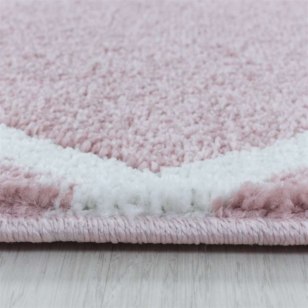 Wohnzimmerteppich Kurzflor Teppich Design Raute Modern Linien Unifarben Rosa