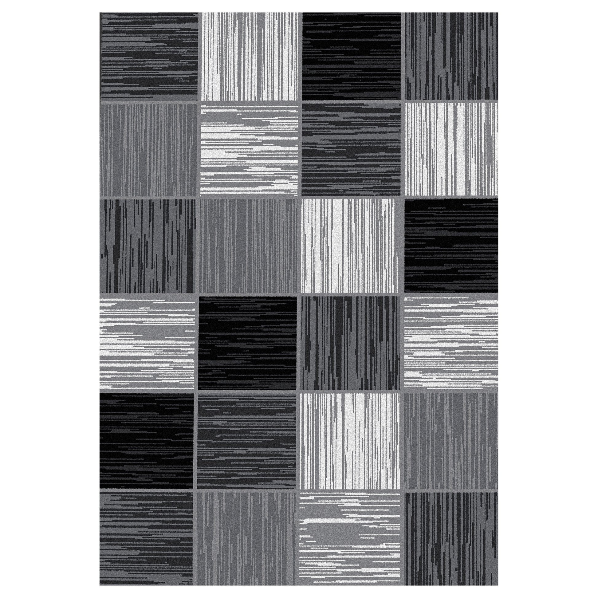 Wohnzimmerteppich Kurzflor Teppich Modernes Karo Kachel Muster Flor Schwarz