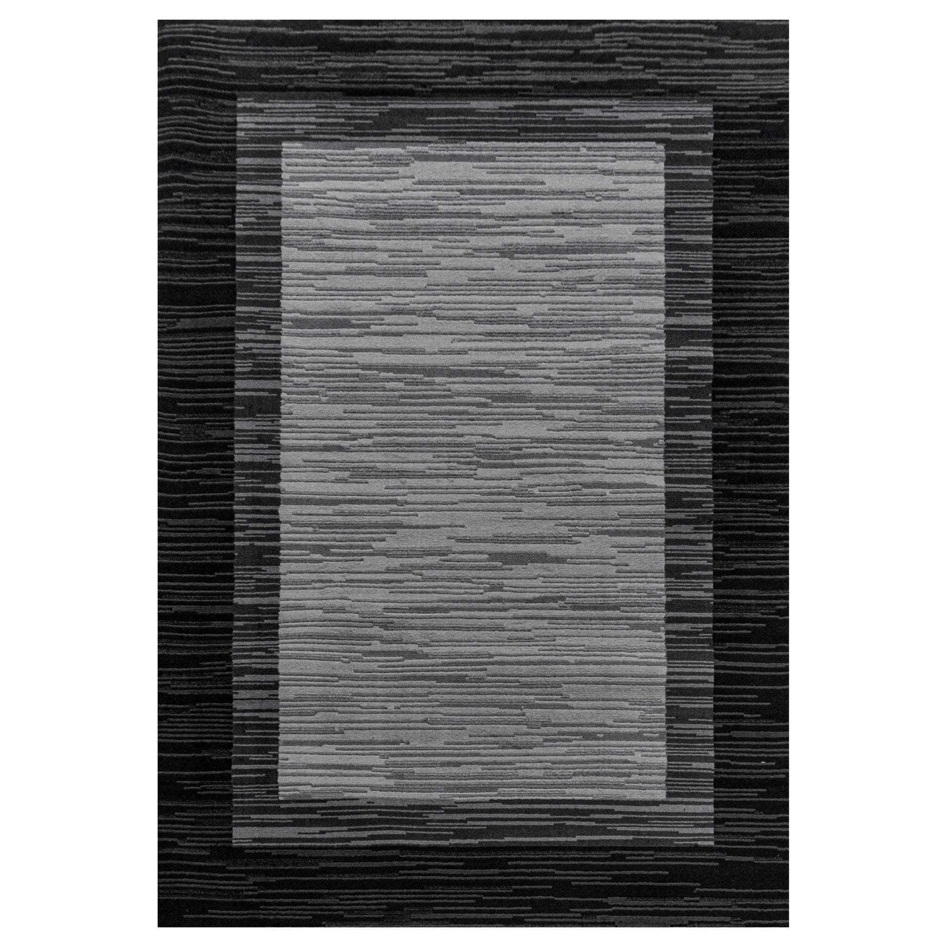Wohnzimmerteppich Kurzflor Teppich Modernes Muster Bordüre Flor Weich Schwarz