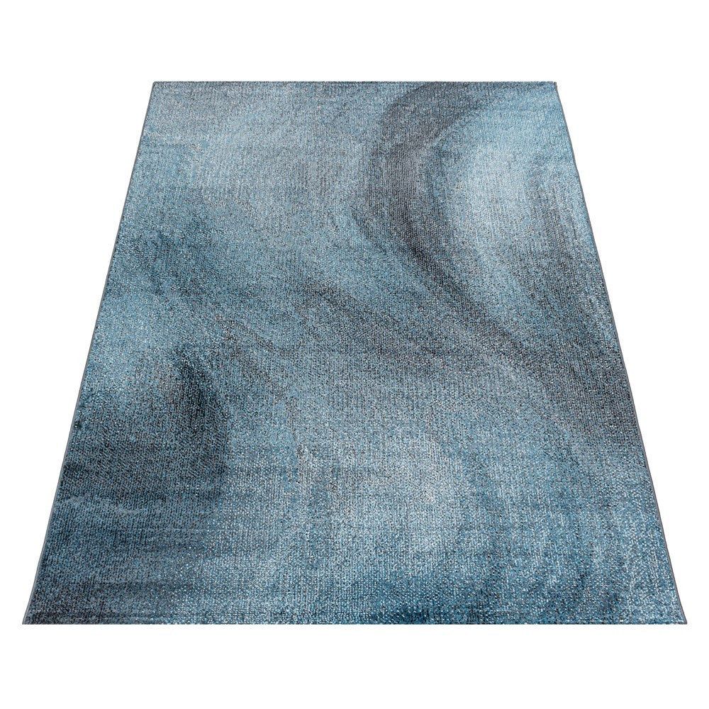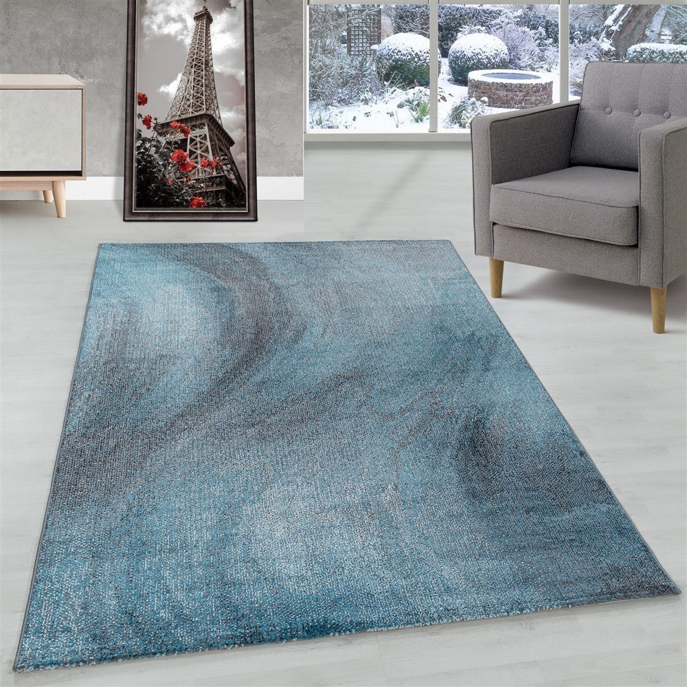 Wohnzimmerteppich Kurzflor Teppich Muster Verwischt Marmoriert Weich Blau