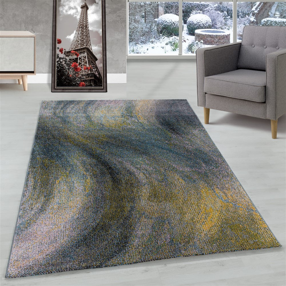 Wohnzimmerteppich Kurzflor Teppich Muster Verwischt Marmoriert Weich Mehrfarbig