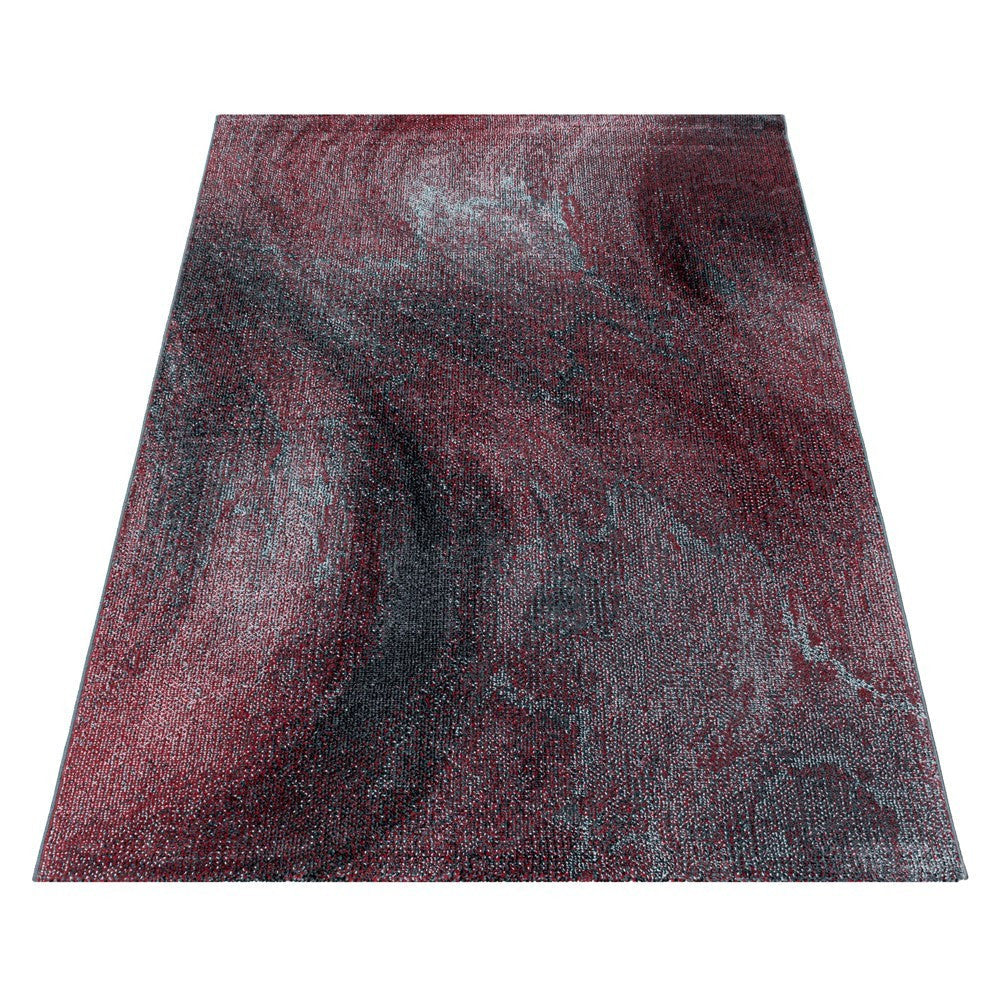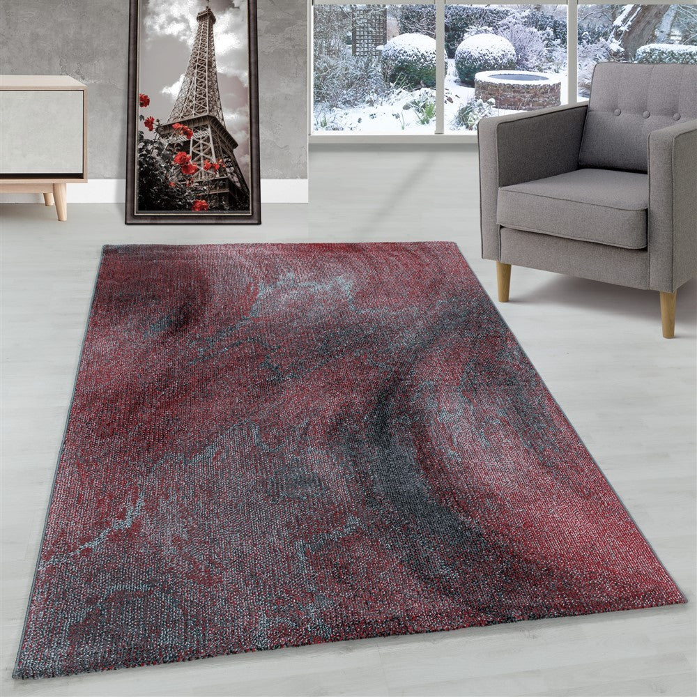 Wohnzimmerteppich Kurzflor Teppich Muster Verwischt Marmoriert Weich Rot