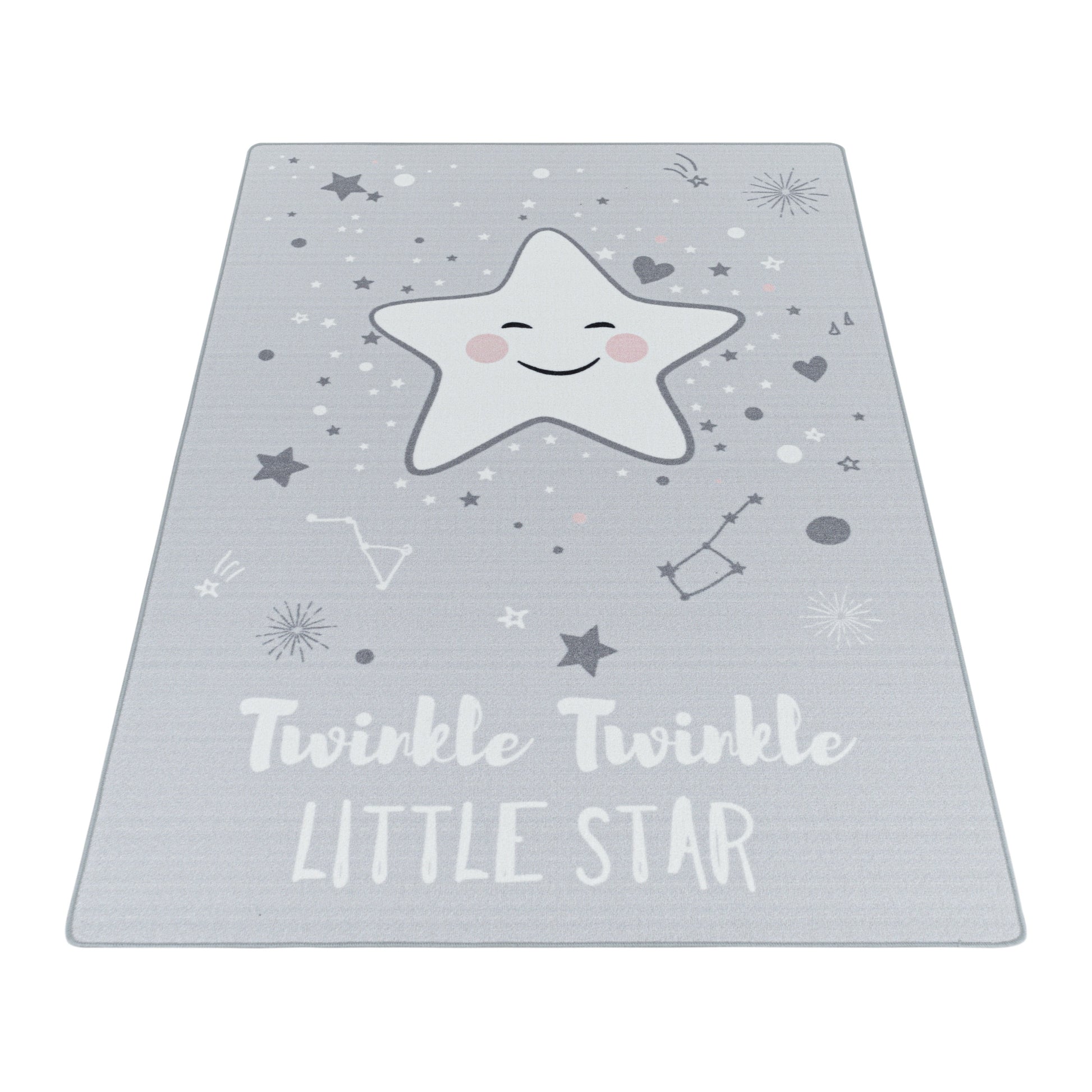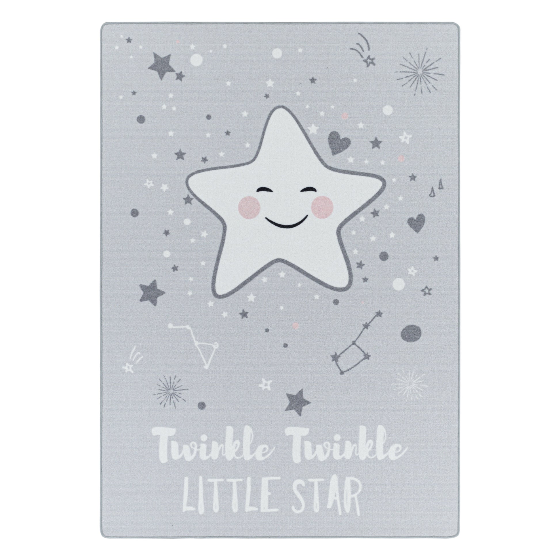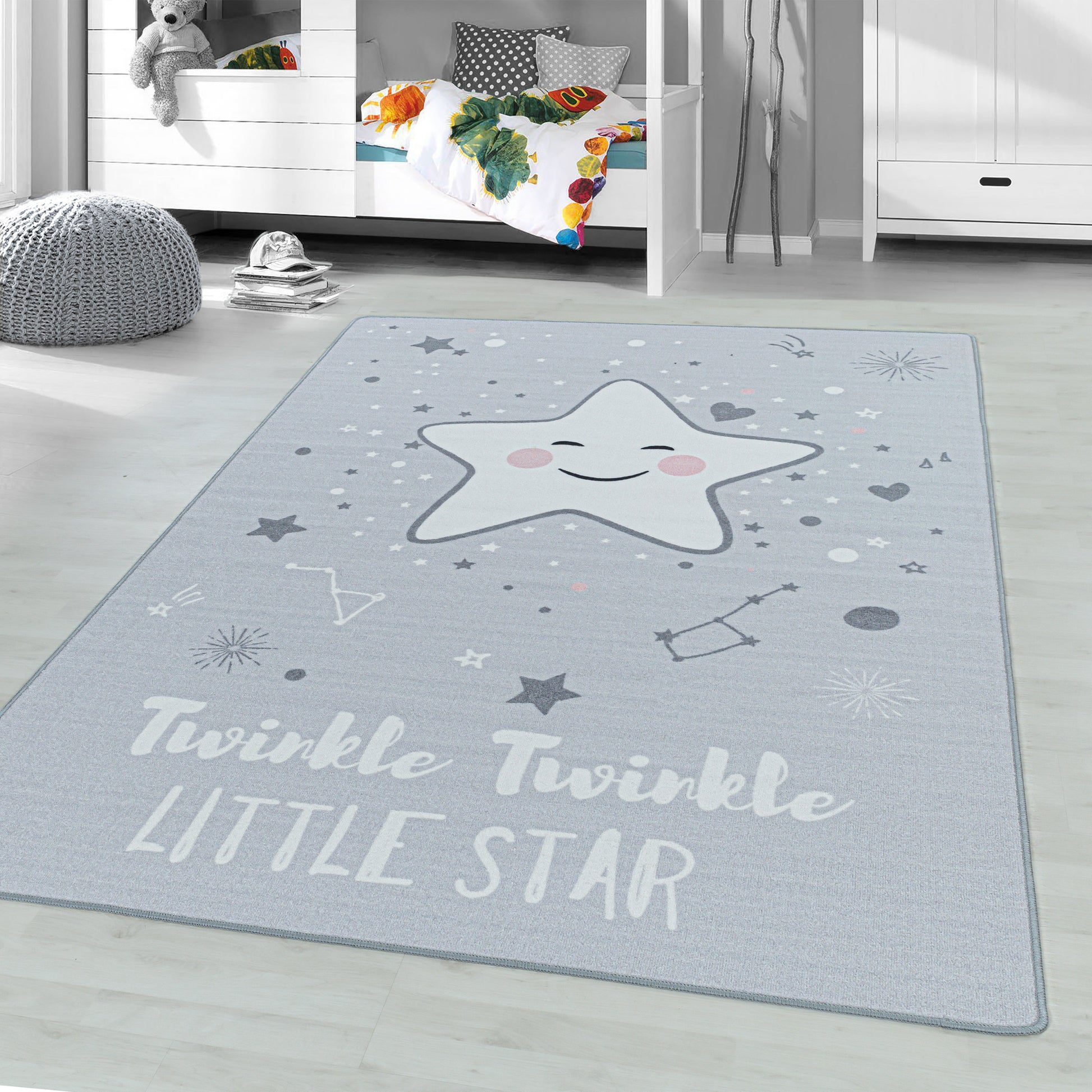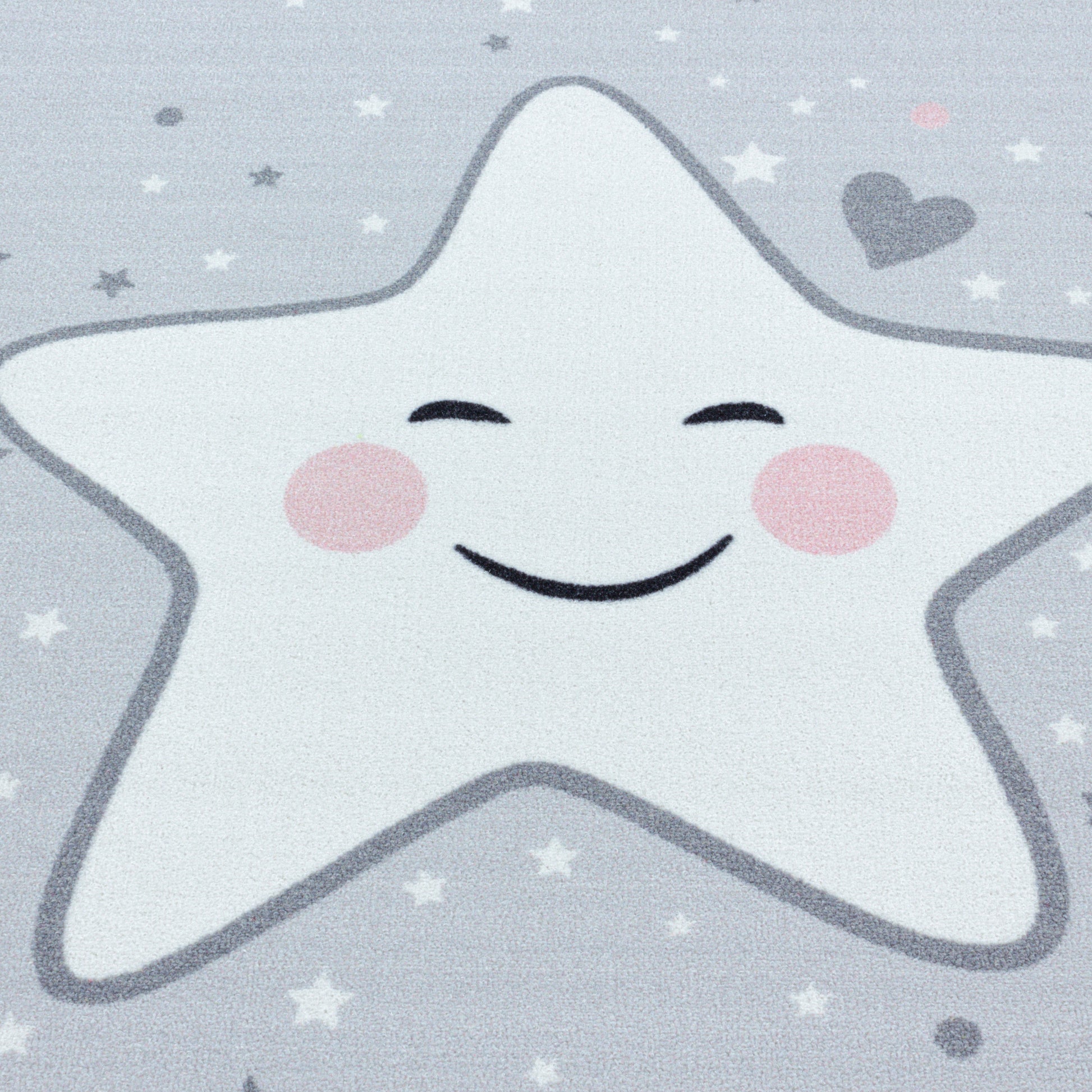 Kurzflor Kinderteppich Spielteppich Kinderzimmer Teppich Motiv Baby Stern Grau
