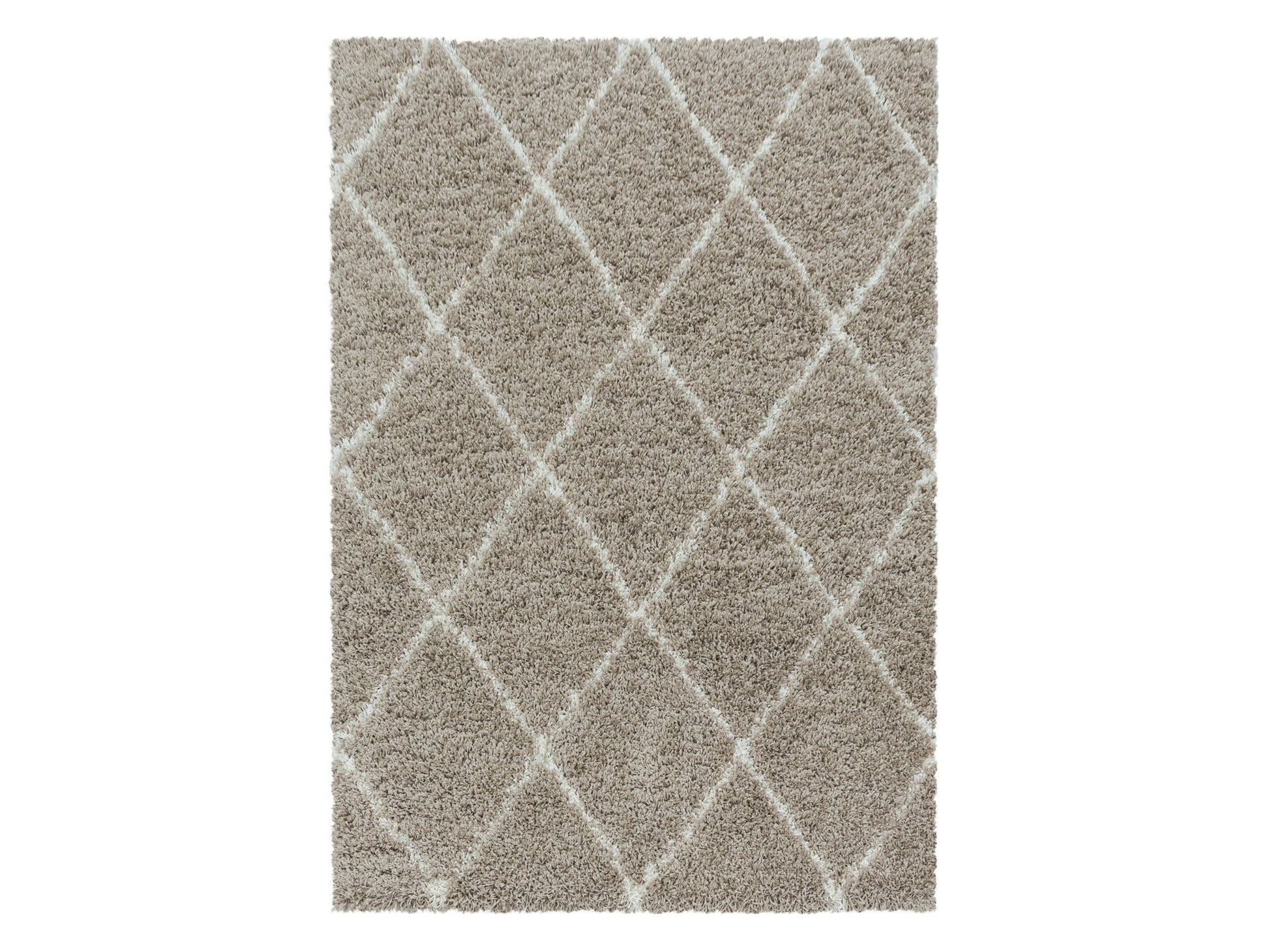 Wohnzimmerteppich Design Hochflor Teppich Muster Raute Flor Weich Farbe Beige
