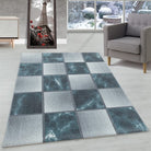 Wohnzimmerteppich Kurzflor Teppich Blau Grau Quadrat Muster Marmoriert Weich