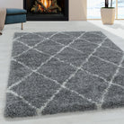 Wohnzimmerteppich Design Hochflor Teppich Muster Raute Flor Weich Farbe Grau
