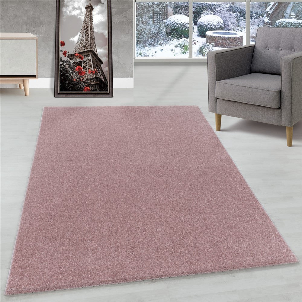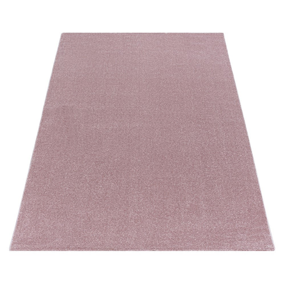 Wohnzimmerteppich Kurzflor Design Teppich Unifarben Weicher Flor Einfarbig Rosa