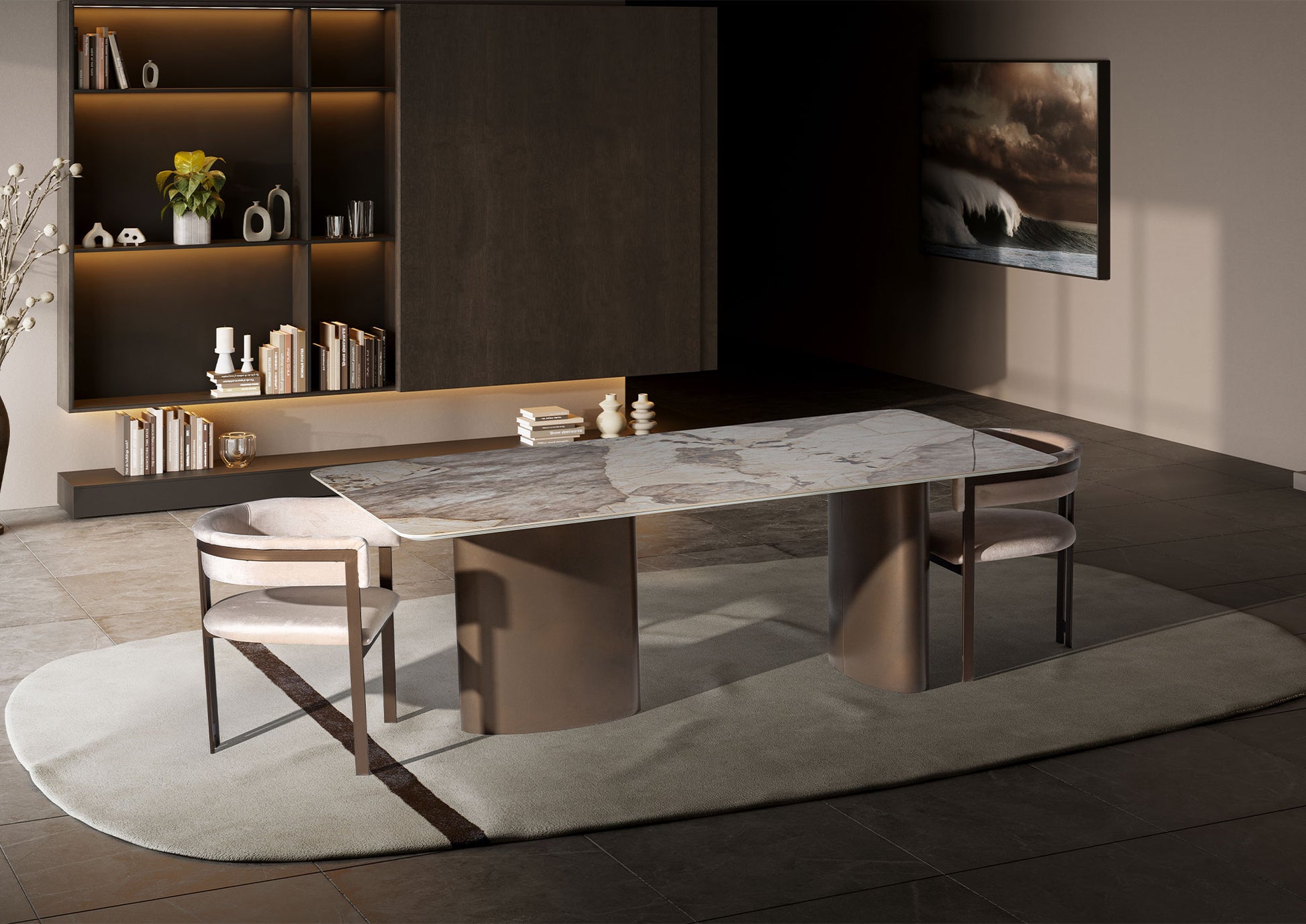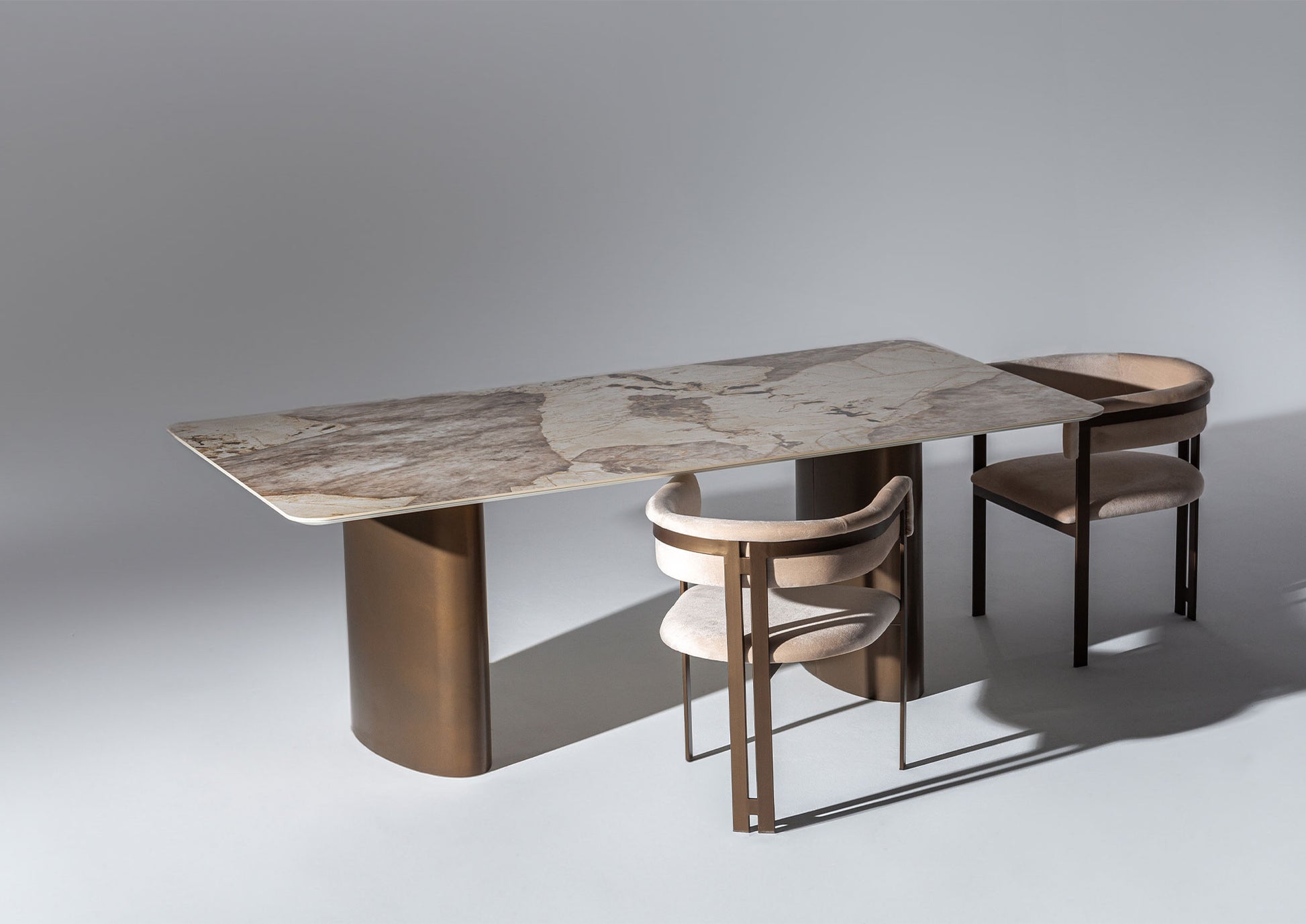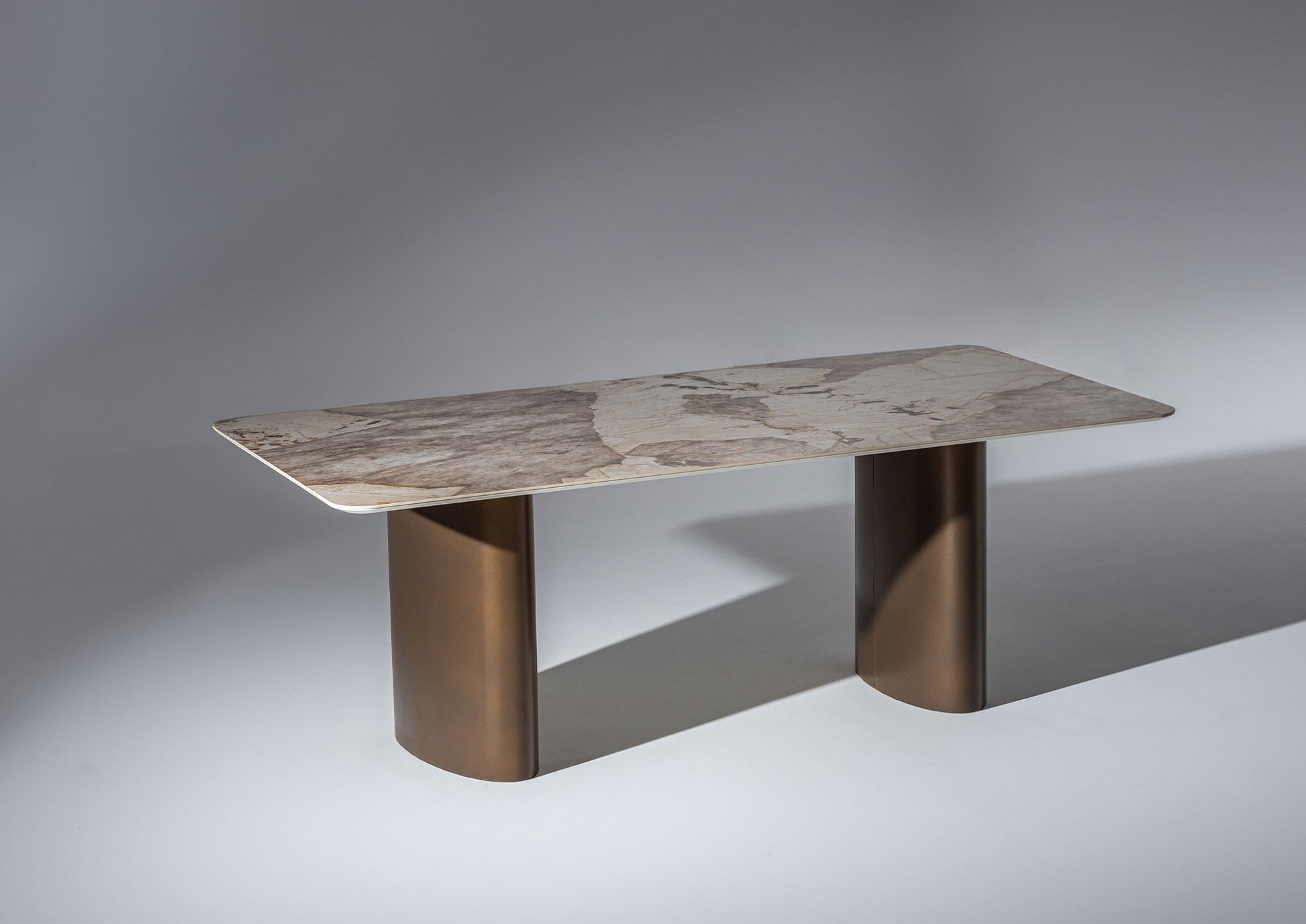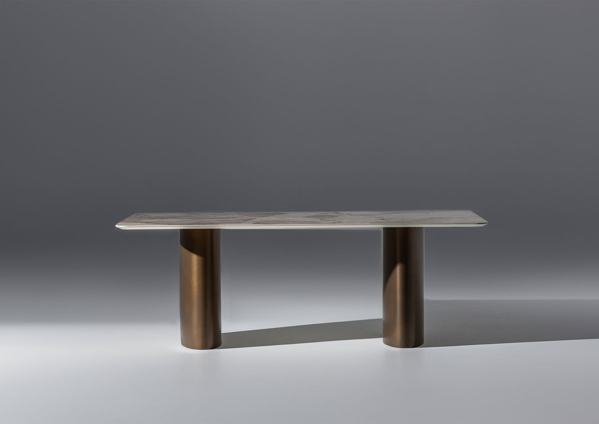 İstanbul yemek masası, güçlü bir duruşa sahip modern, minimalist bir tasarımı temsil ediyor. Sade hatlara sahip masa tablası, sağlam, blok benzeri bir orta kaide ve ek bir destek ayağı ile desteklenerek masaya kendine özgü bir mimari karakter ve olağanüstü bir denge kazandırıyor.