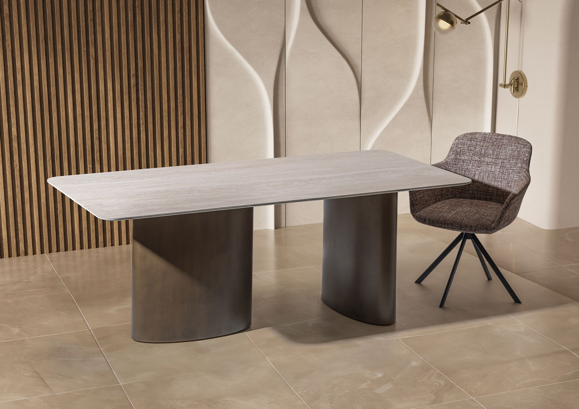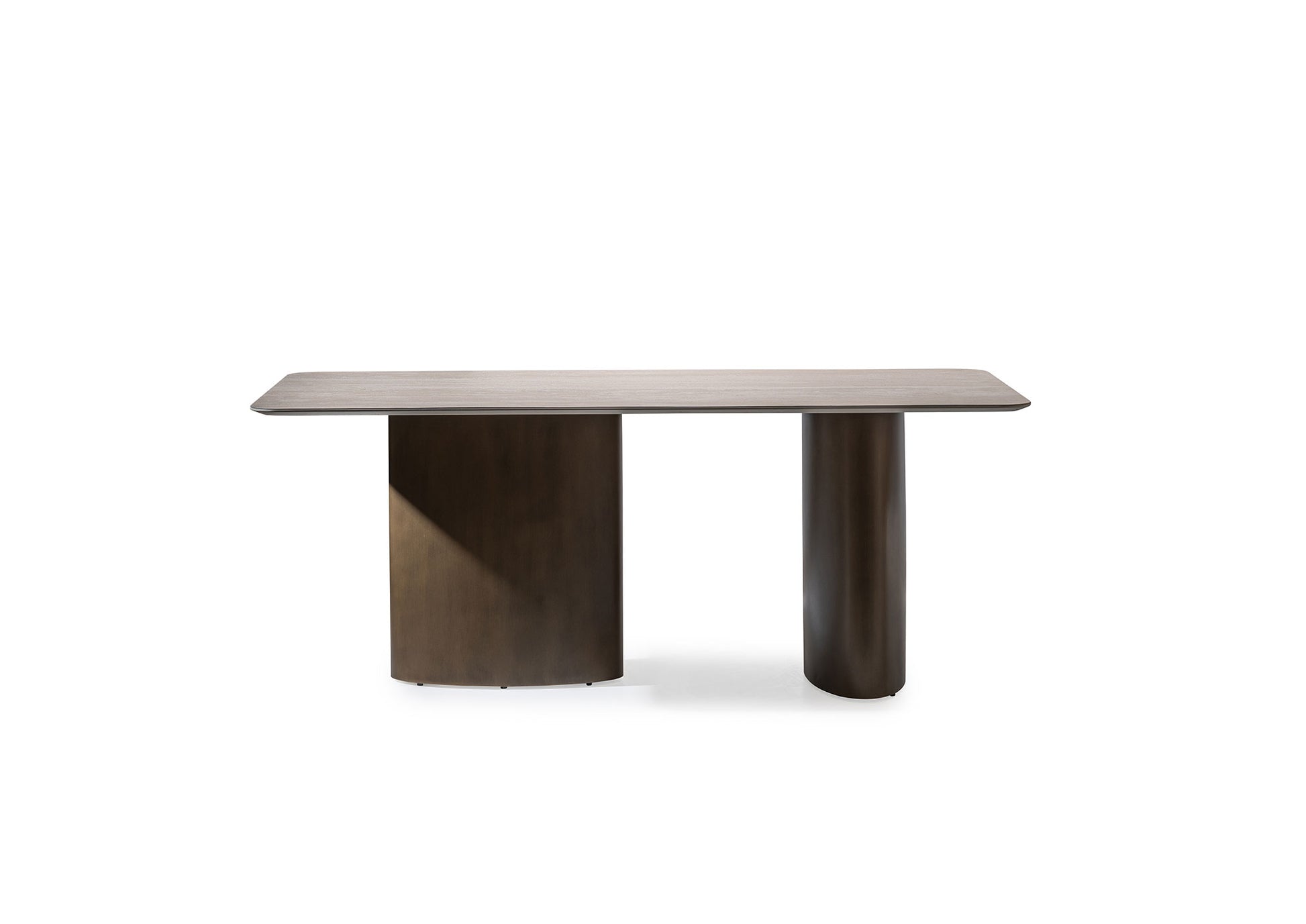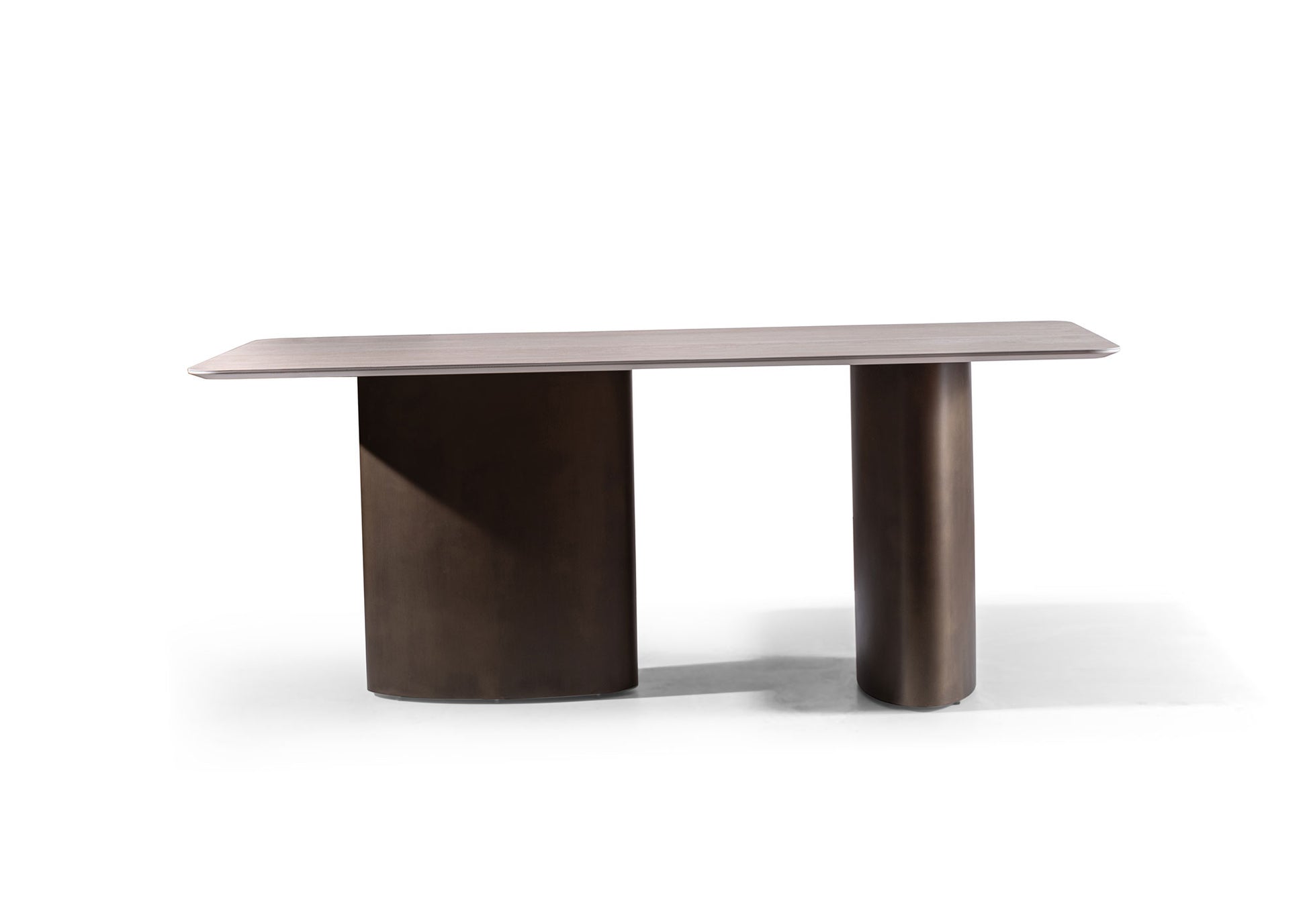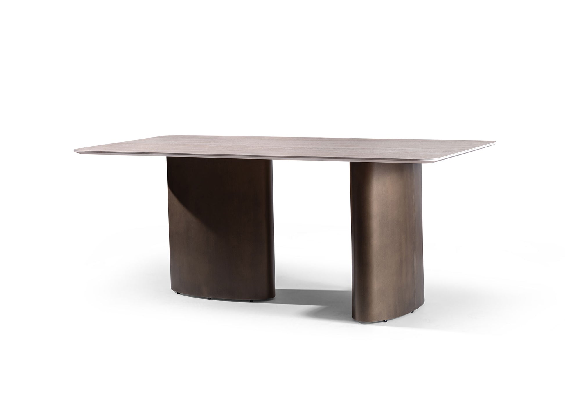 Lyon yemek masası , sakin, zarif görünümü ve modern, dengeli tasarımıyla etkileyici. Hafifçe yuvarlatılmış köşelere sahip geniş masa tablası, iki sağlam, oval ayak üzerinde durarak masaya güçlü bir duruş ve aynı zamanda uyumlu bir hafiflik kazandırıyor.