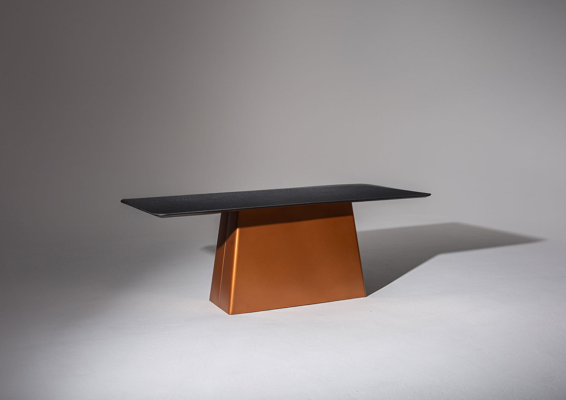 Madrid yemek masası, güçlü, modern tasarımı ve masaya güçlü bir mimari görünüm kazandıran olağanüstü, yamuk biçimli orta kaidesiyle etkileyici bir görünüme sahip. Temiz, geniş masa tablası, çarpıcı tabanla zarif bir kontrast oluşturarak masayı gerçek bir tasarım harikası haline getiriyor.