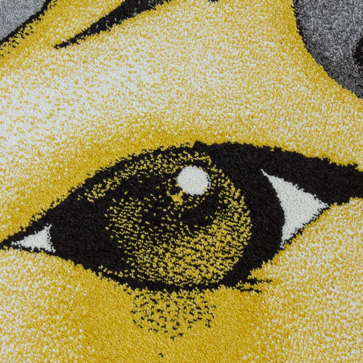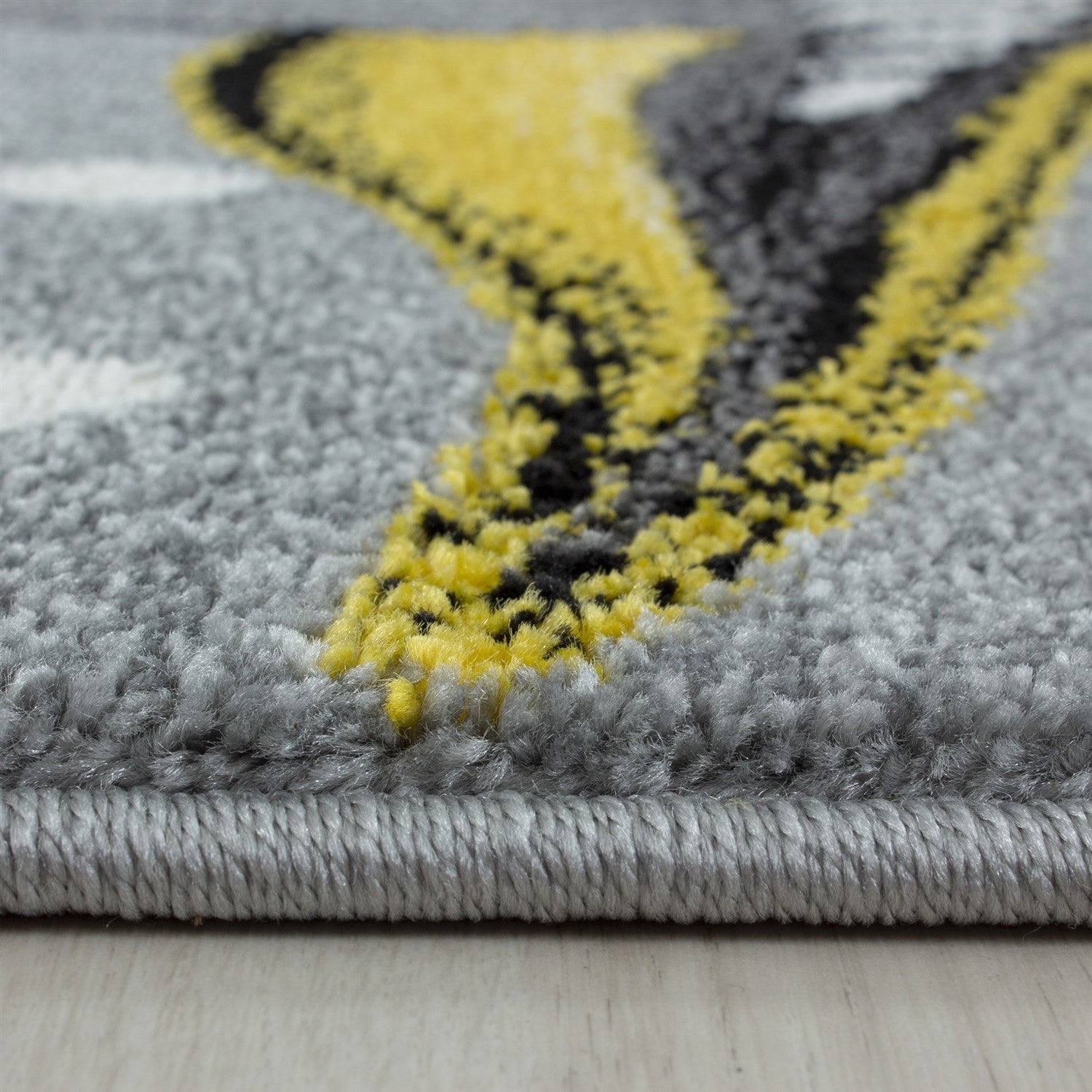 Kinderteppich Kinderzimmer Teppich Einhorn Muster Grau-Weiß-Gelb