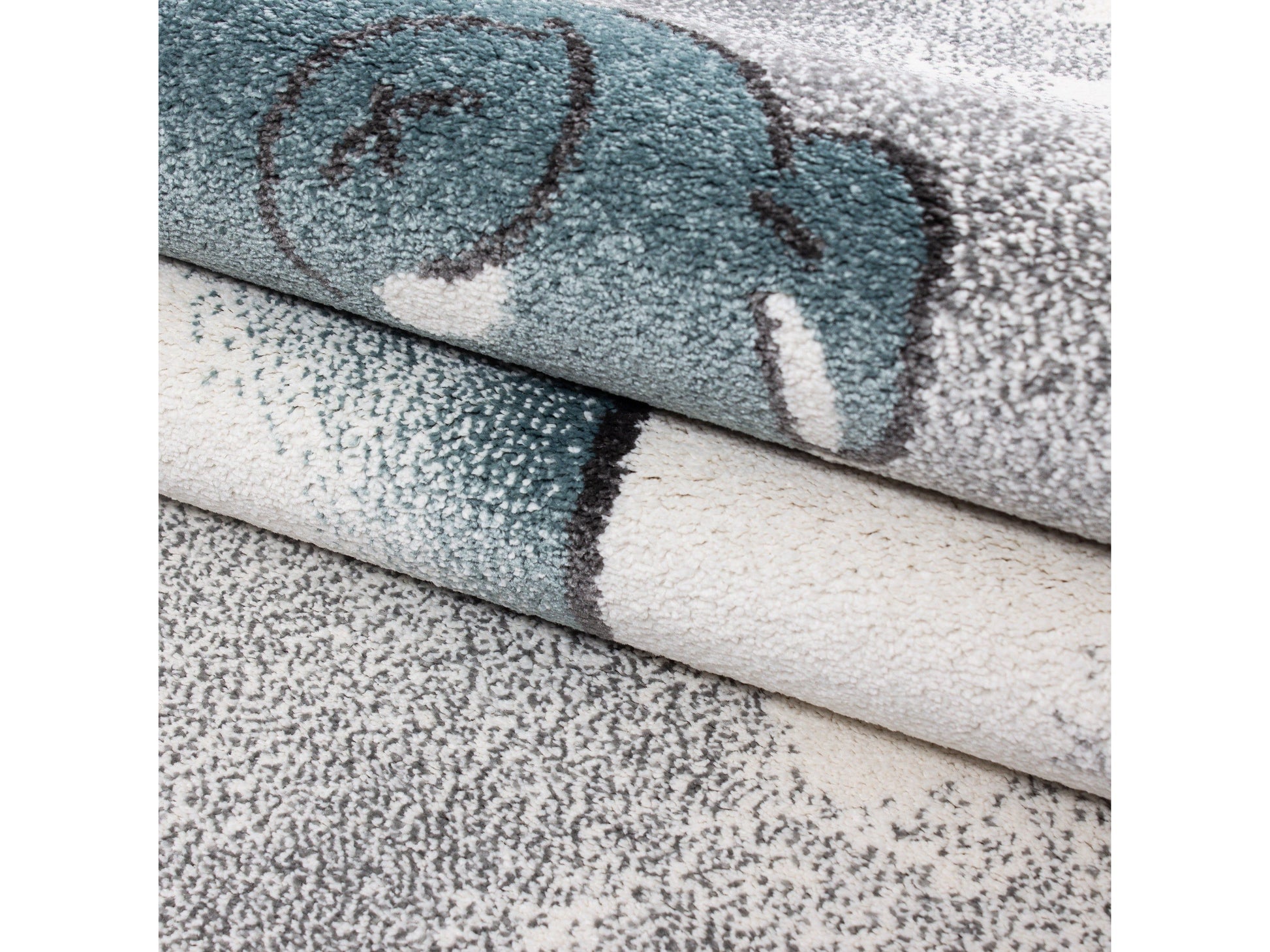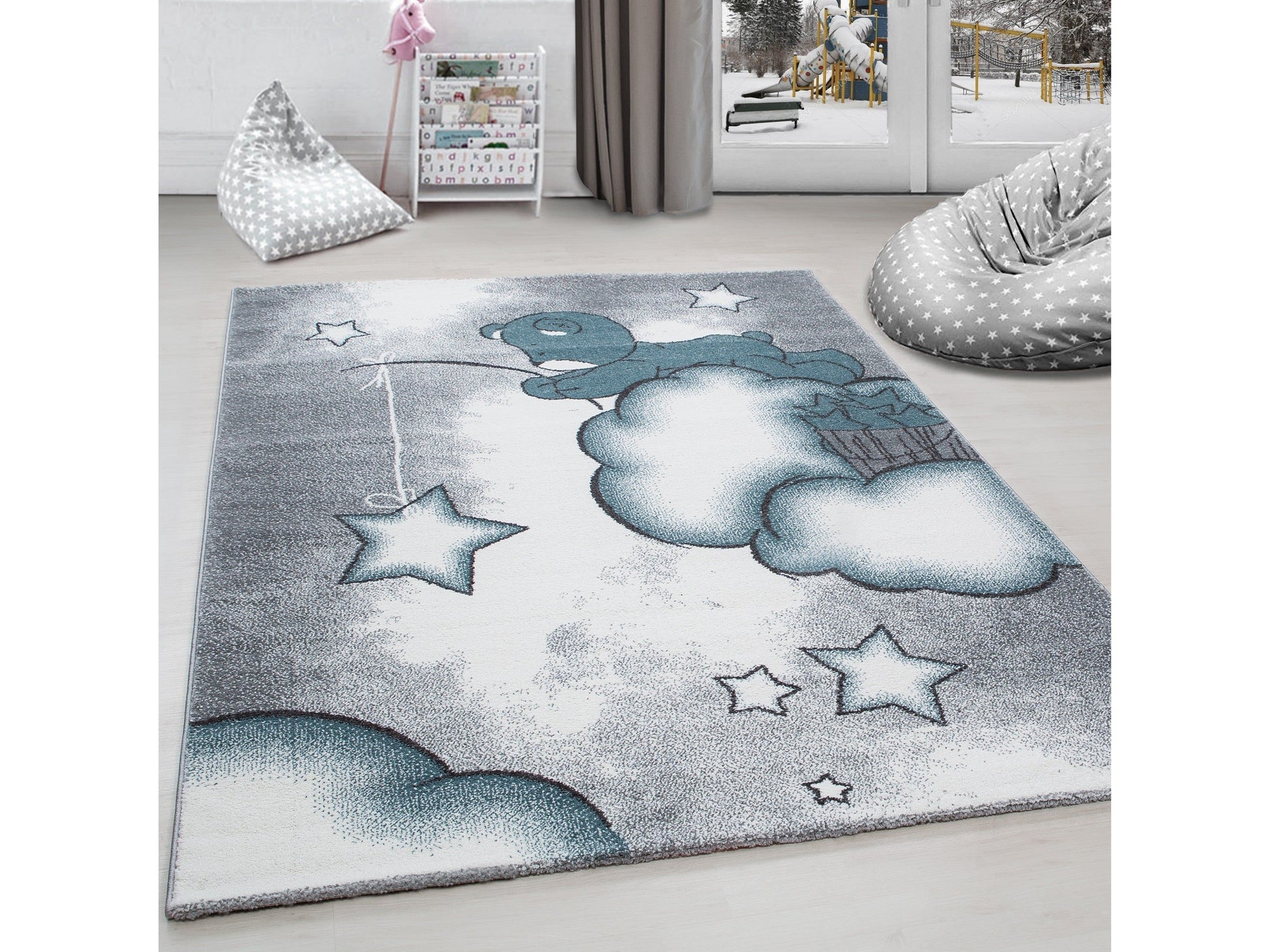 Kinderteppich Kinderzimmer Teppich Bär Wolken Stern-Angeln Grau-Weiß-Blau