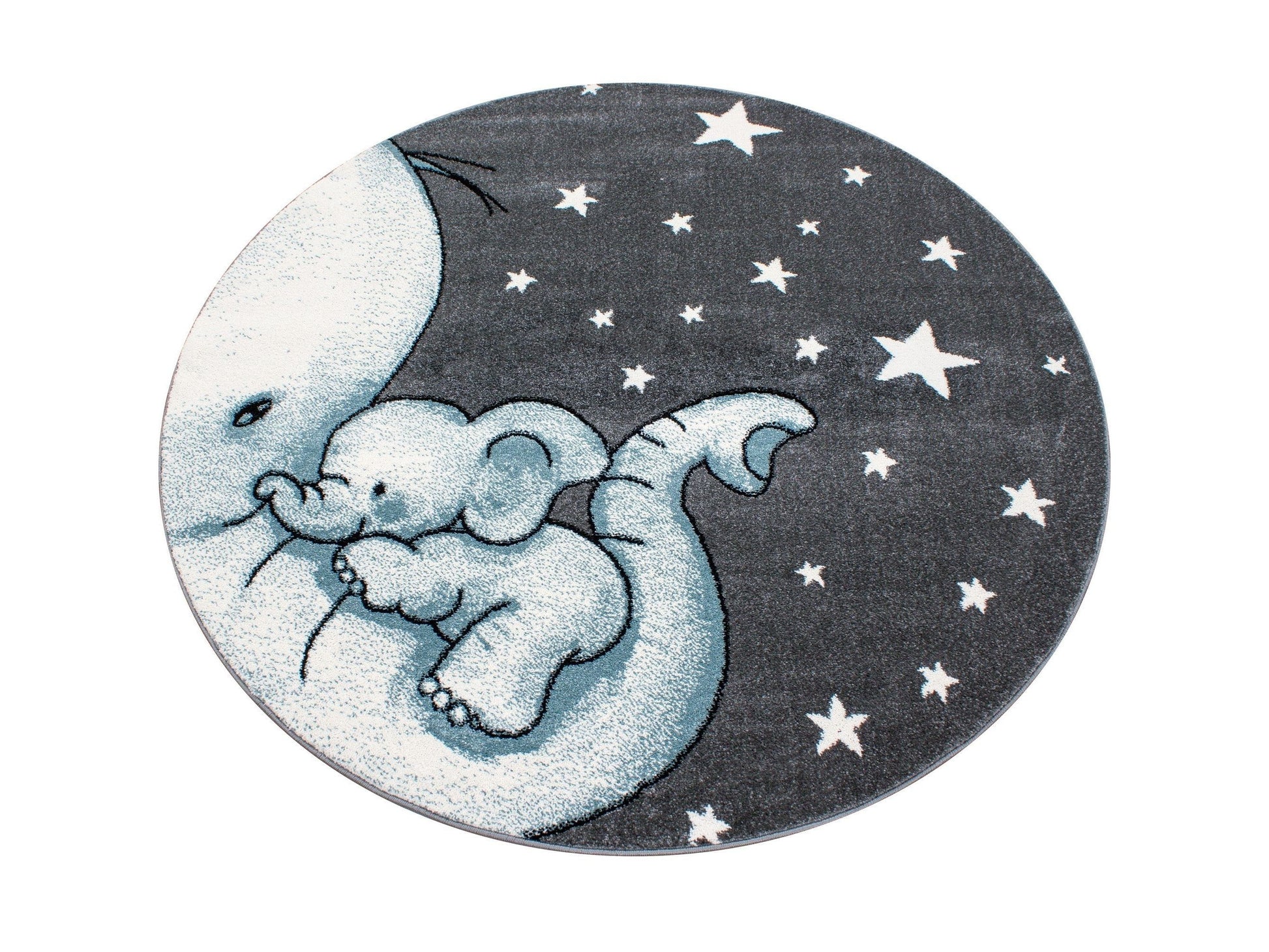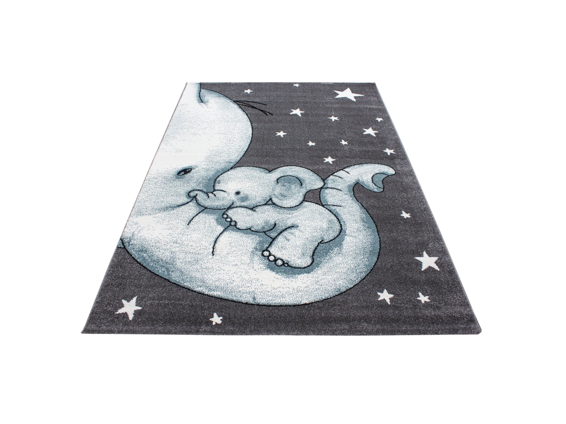 Kinderteppich Kinderzimmer Teppich niedlicher Elefantenbaby Stern Grau-Weiß-Blau