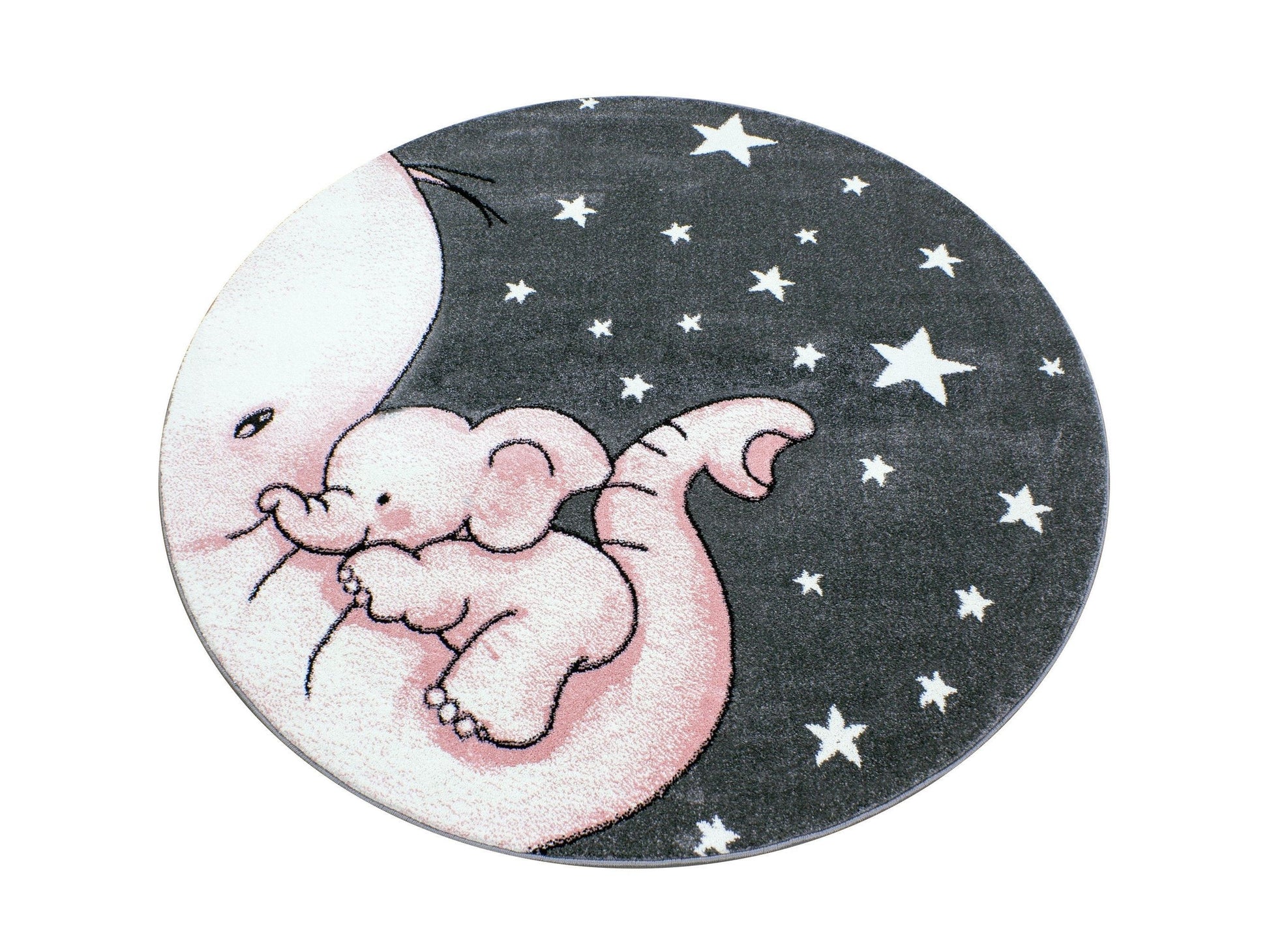 Kinderteppich Kinderzimmer Teppich niedlicher Elefantenbaby Stern Grau-Weiß-Pink