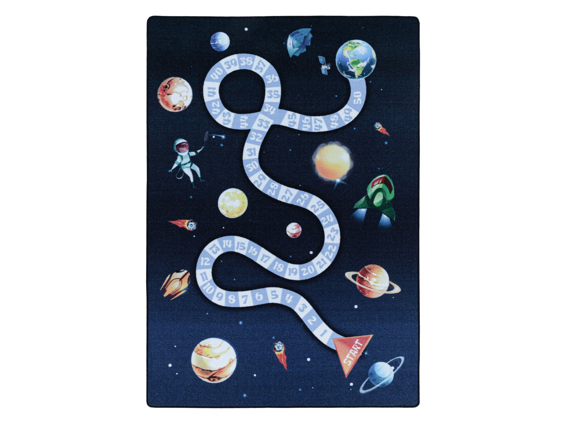 Kurzflor Teppich Kinderteppich Kinderzimmer Spiel Weltall Planet Rakete Blau